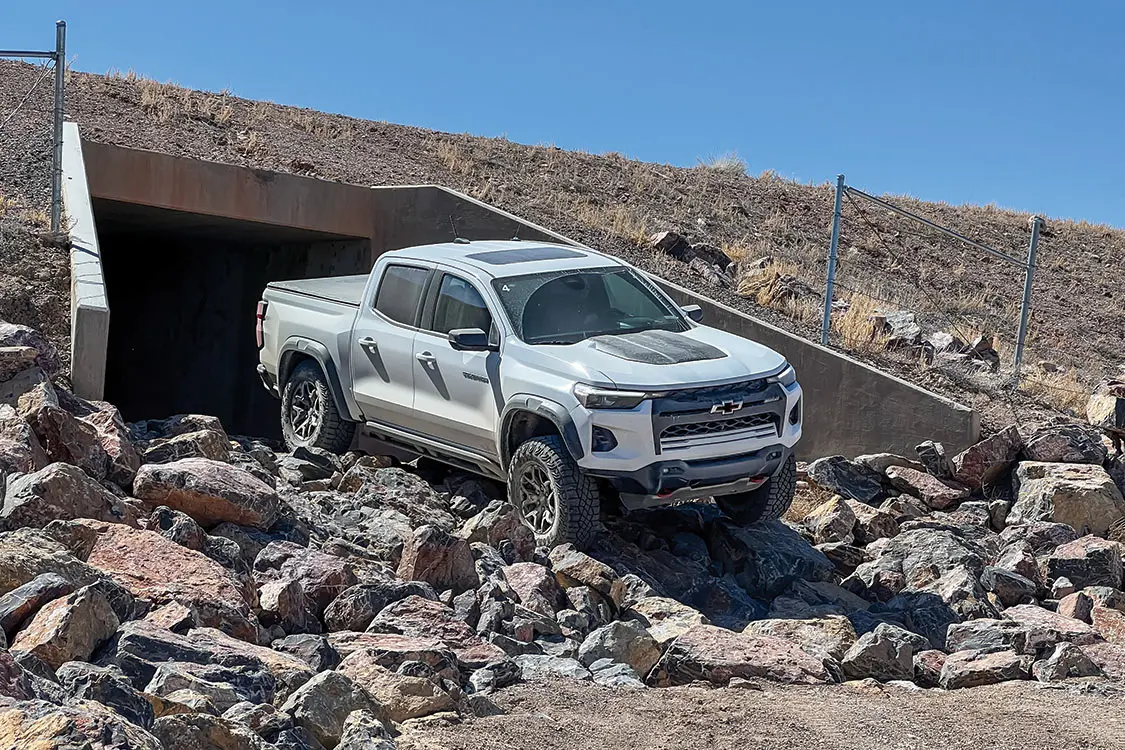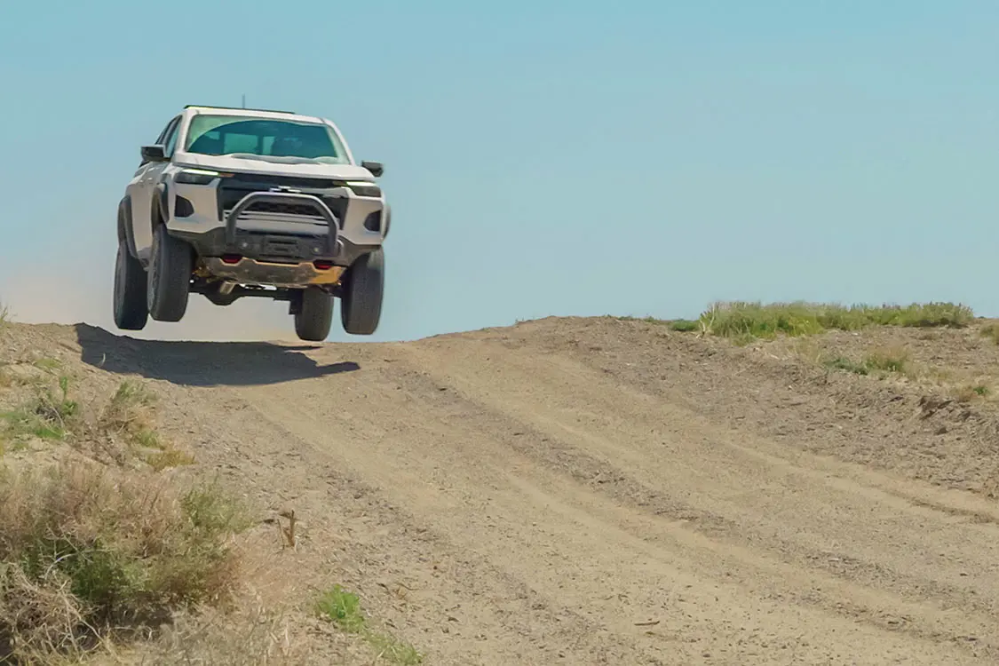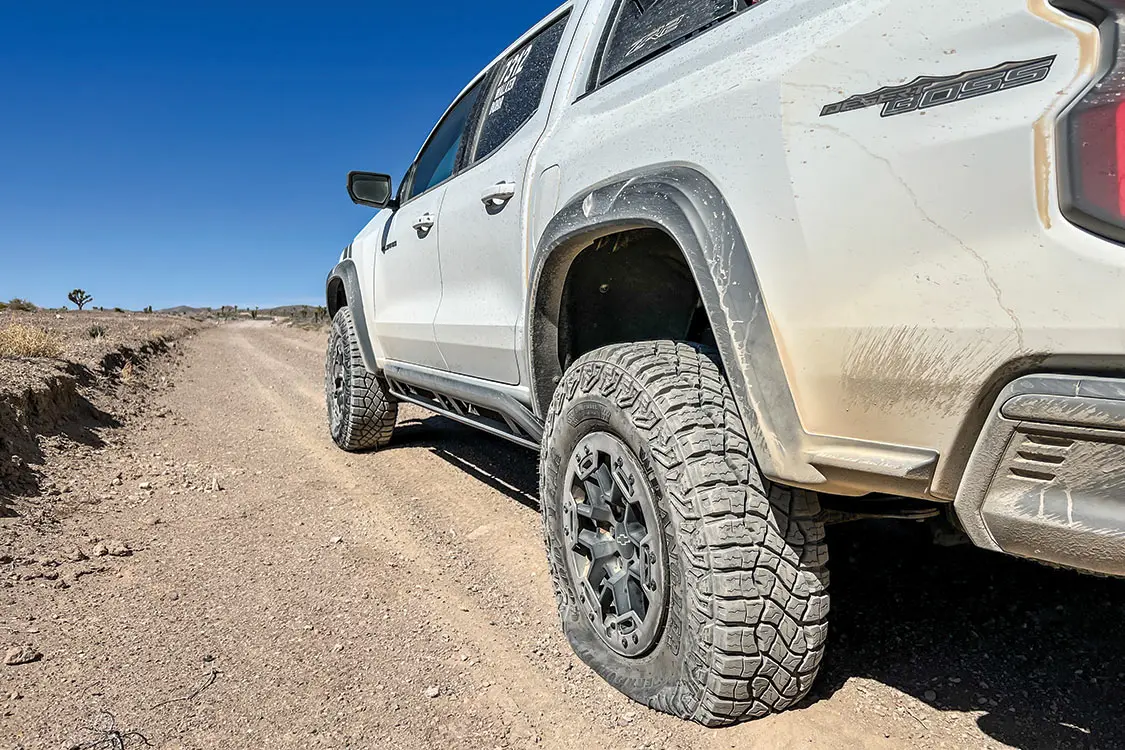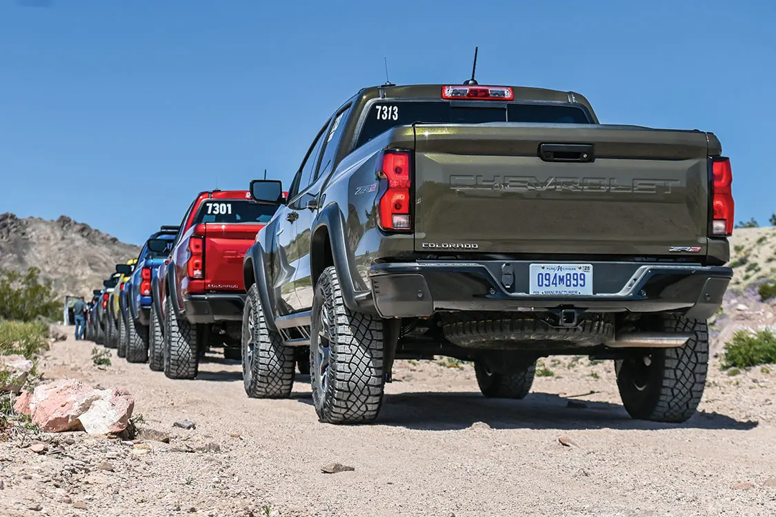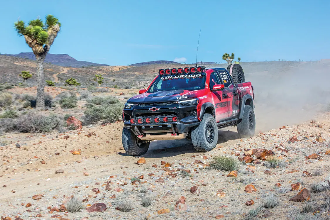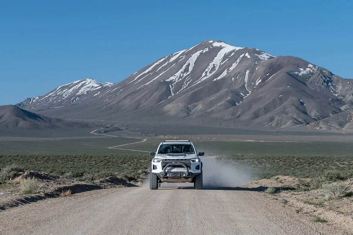 Up next The Best New Automotive Accessories for Your Ride Published on March 26, 2025 Author Bryon Dorr Tags 2023 Chevy Colorado ZR2, Chevrolet Colorado zr2, Chevy Colorado ZR2, Colorado zr2, Share article Facebook 0 Twitter 0 Mail 0 Pushing Limits: Testing the 2023 Chevy Colorado ZR2 on the Vegas to Reno Route 2023 Chevy Colorado ZR2 Testing It’s the morning of day three and I’m bombing down a deep sandy gully that follows some power lines across the desert as far as the eye can see. The truck I’m piloting is doing the deep sandy rut dance and I’m staying loose and letting it do its thing. A sharper-than-expected corner comes up quickly and the rear tires come out of the rut as I toss the truck aggressively into the corner and stay on the gas. I’ve got it in 4WD, with all the electronic nannies turned off, and Baja mode engaged. The backend swings out in a controlled four-wheel drift in the deep sandy gully that has me giggling like a schoolgirl and scanning ahead for the next opportunity to do it again. “Weightlessness lasted much longer than anticipated, but when the truck came back to terra firm, the landing was so smooth and controlled that the grin on my face just got bigger.” Driving in 2WD, Baja mode, and traction and stability control turned off makes for a very fun time off-road at speed over moderate terrain. My confidence has grown in the machinery over the past two-plus days and my right foot has gotten heavier. As I come around another sweeping corner a quick uphill elevation change appears. A mischievous grin imprints itself on my face as I push my right foot to the floor and at takeoff straighten the wheel. Weightlessness lasted much longer than anticipated, but when the truck came back to terra firm, the landing was so smooth and controlled that the grin on my face just got bigger. Subscribe to our weekly newsletter Shiny low mile new trucks at the starting line ready for the big off-road miles ahead. Adventure Testing of Chevy Colorado ZR2 This was the final morning of a three-day adventure driving from Las Vegas to Reno on the Best in the Desert racecourse in the new 2023 Chevy Colorado ZR2. It is also the first media drive of the next-generation truck, with only nine top journalists in attendance. For sure, it is just a media review/content creation drive and not a race, but they did let us pick numbers and put the numbers and our last names on the trucks. That makes them race trucks, right? We did get one flat, an inner sidewall tear, from a piece of sharp shale. We started in the glitz of a Vegas casino, spent the second night in the old-school desert outpost of Tonopah, the third night in the bustling town of Fallon, and finished off in Reno with snow-covered mountains looming over the city. The finish line was actually at Chad Hall’s race shop outside of Reno with a special visit from a heavily camoed ZR2, on 35s, covered in AEV parts — yes, the 2023 Chevy Colorado ZR2 Bison. Comfort and capability are strengths of this truck on road as well. It eats highway miles with ease. (Photo: Joshua Walker) My truck had just over 300 miles on it when the trip began, and I added over 700 behind the wheel, 400+ of that on dirt. Over the three-day adventure, we generally followed the exact route of the 2022 Vegas to Reno race, with detours made and sections removed for snowy mountain passes, time issues you get with a 12-vehicle convoy, a good number of flat tires, one driver error rock impact, a few loose lightbars, and me almost running out of fuel after burning too much on an early morning photo/video mission. Chevy Colorado ZR2 First Impressions If you couldn’t tell from the intro, I’m impressed with this new truck. It’s a great size for everyday practicality, has magic shocks that are as good on road as off, and finally has an interior that isn’t offensively bad. Better yet, the interior is actually quite nice, and has all the latest tech. Chad Hall’s 2023 Colorado ZR2 stock class race truck The camera system is top notch, and includes an under-truck trail cam, with lens cleaner system. The off-road driving modes and standard features, like front and rear lockers, make this truck not only capable but easy to control for any skill-level driver. The 33-inch all-terrain tires are a perfect on-road/off-road compromise, although I’d put a tire with a stronger sidewall on the truck for heavy off-road use. I do love that the Chevy Colorado 2023 now has the same wheel bolt pattern as the full-size trucks, which opens up a wide range of wheel options to choose from. The 2023 Chevy Colorado ZR2 is a sporty and fun truck, especially in the desert at high speeds. I’d prefer the options of a longer truck bed and an extended cab, but it’s obvious that Chevy’s research shows that the crew-cab short box (5’1.7” long bed) is what the majority of buyers in this category want. I’d also prefer a few more hard buttons, versus so many controls buried in the infotainment menu screens. For example, there are no hard buttons/switches/dials for the headlights, fog lights, or traction control. “It’s a great size for everyday practicality, has magic shocks that are as good on road as off, and finally has an interior that isn’t offensively bad.” The new ZR2 is tuned considerably better than the last generation truck for slow-speed technical terrain, and the 2-inch larger diameter tires help quite a bit as well. This truck flies! But, most importantly, it lands in complete comfort and control. (Photo: Joshua Walker) The death of the gas V6 and diesel engine options in the Colorado is both a blessing and a curse. Sure, you get as much instant torque as the diesel offered and as much horsepower as the gas V6 but gone are the fuel economy of the diesel and great sounds and linear powerband of the naturally aspirated V6. The new one engine for all Colorado trucks 2.7L gas inline-four turbo is an impressive piece of engineering that does its job well, but I