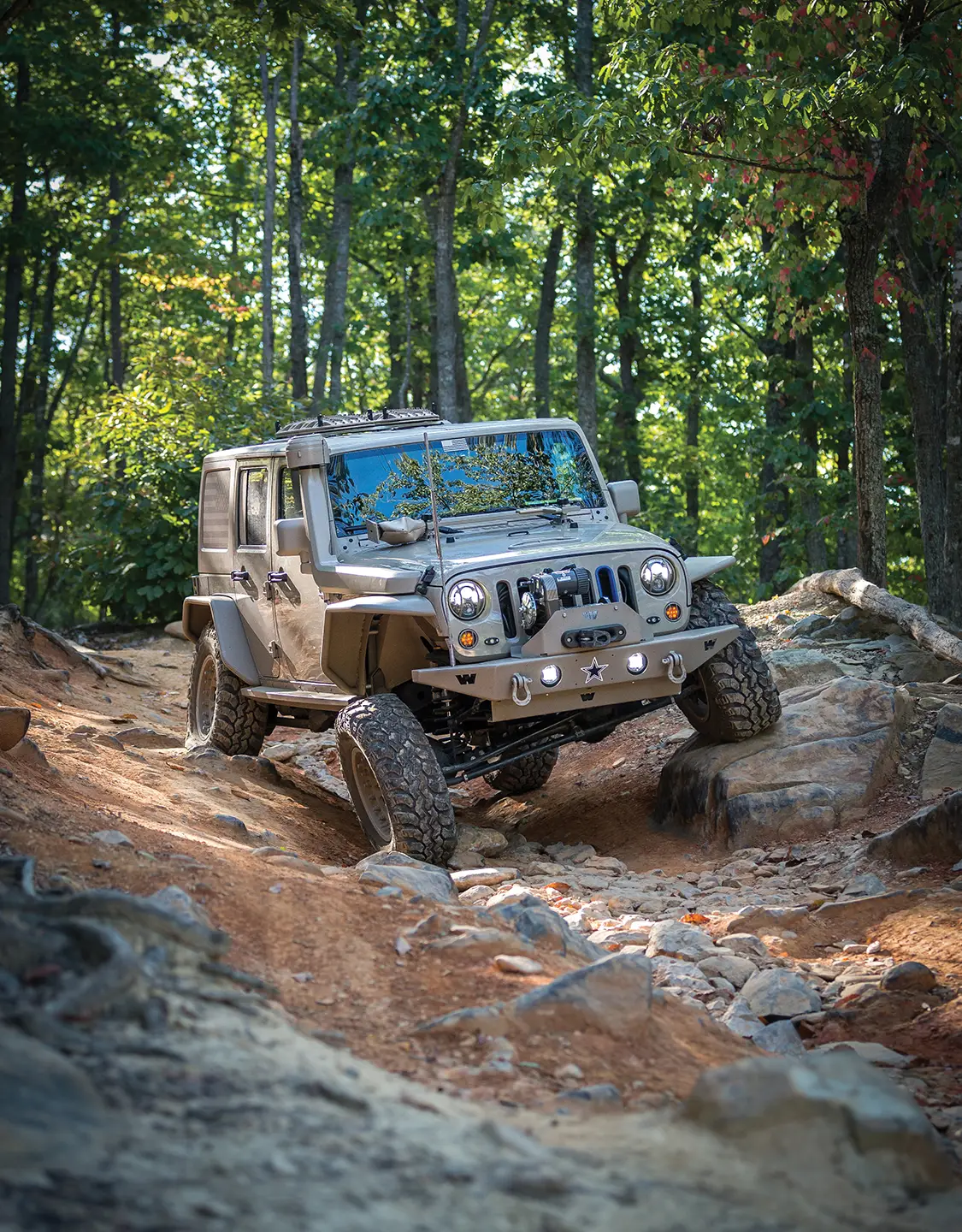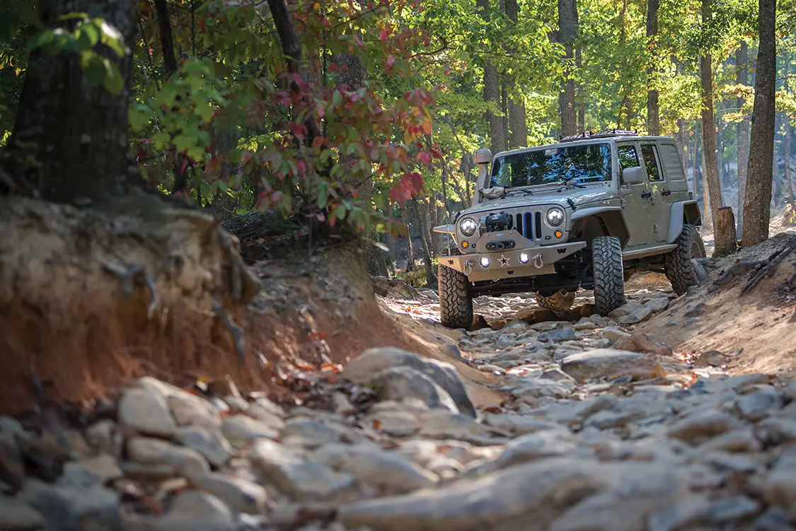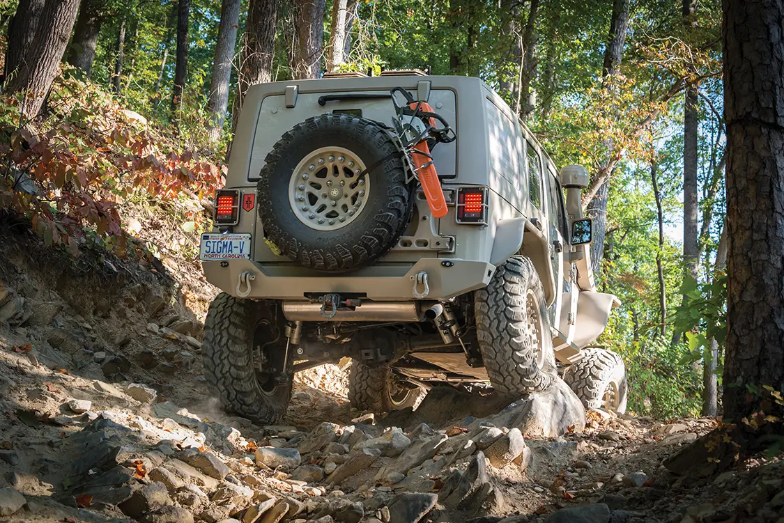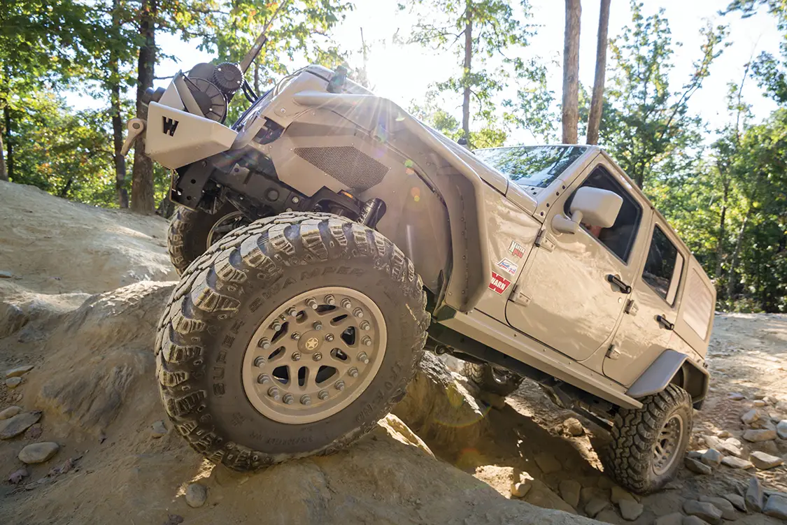Up next Dominating Trails in a 1977 Pinzgauer 712K Published on January 13, 2026 Author Bryon Dorr Photo Credit BRYON DORR Share article Facebook 0 Twitter 0 Mail 0 A Daily-Driven Emergency Response Jeep JKU Daily-Driven Emergency Response JKU Sure, this Jeep JKU just looks like a super-clean military themed build, but there is SO much more than meets the eye! The attention to detail, especially when it comes to functionality on this vehicle, is second to none. Al DeOrleans built this impressive Jeep as a daily driver, family wheeler/overland vehicle, emergency response vehicle, to attract charity donors and eventually to be his son’s, age eight, first vehicle. DeOrleans knows a thing or two about building and using off-road vehicles around the globe, and this build is a culmination of his extensive knowledge and experience. “THE TRIED AND TRUE MOLLE PLATFORM IS UTILIZED THROUGHOUT THE JEEP, WITH ATTACHMENT POINTS ON THE REAR TAILGATE FOLD DOWN TABLE, UNIVERSAL HOLSTER MOUNT IN THE DRIVER’S FOOT WELL, DOOR POUCH MOUNTS AND FRONT AND REAR OVERHEAD PANELS.” Subscribe to our weekly newsletter DeOrleans is a volunteer for two really special organizations doing great things, and this Jeep is a big part of the work he does with them. The first, OVERT (Off-Road Vehicle Emergency Response Team), is an organization that supports first responders during extreme weather and natural disasters, making sure they can do their jobs, even if their personal or work vehicles can’t handle the extreme weather conditions. The second, US Veterans Corps, is what prompted the patriotic military look of the Jeep. The organization raises funds to help veterans in times of need. DeOrleans’s Jeep, and his impressive Hummer H3 build, are both used regularly to help attract potential donors. There is little that can stand in this Jeep’s way. Experienced This Jeep build is perfectly suited to handle just about any obstacle or weather condition that it might face, especially because DeOrleans is behind the wheel. Each and every part on this build was chosen, and many times refined, from DeOrleans’s many years of doing extreme off-road adventure competitions around the globe. The best known has to be the Camel Trophy (Patagonia), but he has also done most of the other similar style competitions as well: Rainforest Challenge (Malaysia), Outback Challenge (Australia), Croatia Trophy, Vermont Overland Trophy and the Warn Challenge (Morocco). DeOrleans has used his years of international competition, and specifically learning from all the other highly experienced teams along the way, to build the ultimate do-everything emergency-response off-road machine. Sure that’s a tall order and a major balancing act, but he has managed to pull it off to great success. Flex is something this Jeep has plenty of. It Begins This build started with a clean ‘16 Mojave Sand Jeep JKU Rubicon, with a manual transmission. Mojave Sand is a factory color that DeOrleans searched out, and then color-matched most of the parts on the Jeep in a matte version. DeOrleans has the strong conviction that automatic transmissions have no place in off-road vehicles, and also wanted his son to learn how to drive a manual for his first vehicle. The main objectives of this build were to create a super reliable vehicle that could execute both daily daddy duties as well as emergency response ones with equal ease. It was never meant to be a heavy-duty rock crawler or competition rig, as DeOrleans already has a fully built Hummer H3 on ProRock 60s and 40-inch IROKs for those purposes. It’s pretty impressive how every component on this Jeep is protected from impact. Armor protects just about every part. Down to Business With reliability and capability, the top orders of business for this build, DeOrleans made sure to first tackle the Jeep’s known weak-nesses. He first upgraded things like the steering system, ball joints and axels—even though the Jeep comes with Dana 44s, the factory ones are known to be quite weak. Because of this, DeOrleans plans to limit his tire size to 35 inches, has gusseted and sleeved the axels and upgraded the drive shafts, mainly to handle the extra weight of recovery gear and emergency supplies. In order to fit the larger tires, improve ground clearance and handle all the extra weight, a Teraflex lift kit was fitted, consisting of a LCG Long Arm Kit, 3-inch Outback springs and Fox 2.5-inch internal bypass shocks. To protect the Jeep even further, especially for those off-road obstacles that inevitably sneak up on you, Fox hydraulic bumpstops were grafted into the framerails. Hutchinson dual beadlock wheels are wrapped in super aggressive Interco IROK ND tires. This combination is perfect for running extreme low psi in order to tackle even the toughest trails. Up Armored Another key component of reliability is durability, and DeOrleans has addressed this with a plethora of quality and highly tested armor components throughout the vehicle. The under-carriage is protected with a range of Off-Road Evolution armor, which is both minimalist and highly functional. DeOrleans has learned that big heavy full coverage skid plates accumulate debris and don’t let air circulate to vital components, so while everything is protected the armor that he chose still allows fresh air to cool hot parts. It’s pretty impressive just how protected from impact every component on this Jeep is— engine skid plate, manual trans skid plate, evap skid plate, trans cross member exhaust skid plate, fuel tank skid plate, control arm skids, diff skids, blocker beam skid, rock sliders, light protectors and rear corner protectors—all from a mix of trusted quality brands. Compact fitted Warn Rock Crawler front and rear bumpers provide quality protection and recovery points, while improving approach and departure angles. Even the fenders and fender wells have been upgraded, with River Raider 2-inch metal fenders and Crawler Concepts aluminum fend