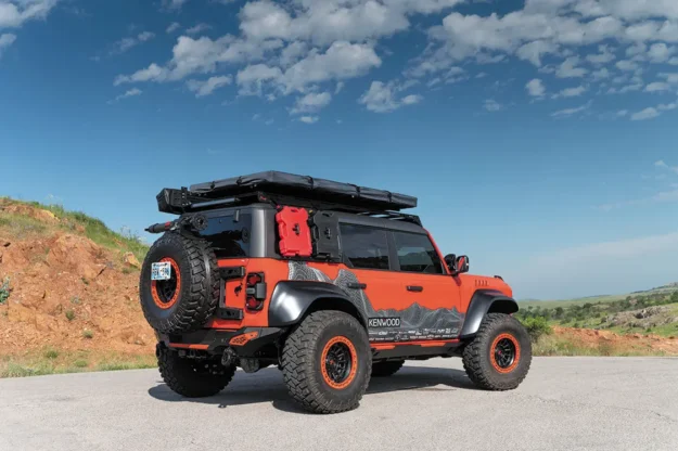 Published on October 02, 2025 Author Bronco Staff Photo Credit Grant Cox Share article Facebook 0 Twitter 0 Mail 0 Bronco Raptor: The First Overlanding Beast of Its Kind Cody Hill’s Overlanding Bronco Raptor For Cody Hill, building wild, fully custom vehicles isn’t a hobby; it’s a way of life. Whether it was a towering squarebody C10, a lifted Ford F-350 dually rolling on 28s, or a tricked-out side-by-side UTV, Cody has always been the type to build big and bring his family along for the ride. But when Ford announced the Raptor version of their reinvented Bronco, something different sparked inside of him. Instead of going the expected route with big wheels or mall-crawler flash, Cody saw an opportunity to go off-grid—literally. Overlanding was a growing trend in the custom scene, but Cody realized no one had yet tackled an overlanding Bronco Raptor. That lone idea ignited a full-blown build concept that quickly snowballed into something the custom world hadn’t seen before. Subscribe to our weekly newsletter To get the wheels turning, literally and figuratively, Cody called on his longtime friend and show scene veteran, Robbie Bryant. Robbie, knowing the right people in the right places, connected Cody with Brock Baker, who is a specialist in overland gear and a perfect match for Cody’s vision. Together, the trio dialed in a plan that would elevate the Bronco Raptor into a trailblazing, crowd-gathering rig ready for both SEMA show floors and Colorado mountain passes. While the factory suspension on the Bronco Raptor was already highly capable, Cody opted for higher-rate Eibach springs paired with Fox shocks to better suit the fully loaded trail setup and family comfort on those longer off-road runs. This upgrade also came just in time when Kenwood caught wind of the build and jumped onboard as a sponsor, as well as asking to feature the Raptor in their booth at the 2024 SEMA Show. Being a lifelong fan of high-end audio systems, Cody jumped at the opportunity. Rolling on a set of KGI Forged 17×9 Lifter beadlock wheels wrapped in massive 37-inch Fury Country Hunter MT2 tires, the Bronco had the grip and clearance needed for serious off-road adventures. Brock added a subtle pop by powdercoating the beadlock rings and bumper accents to tie the look together. For protection and practicality, Bodyguard Baja front and rear bumpers replaced the stock plastic ones. The front end was adorned with Tufskinz Raptor emblems, custom hood badges, and a full suite of RIGID Industries lighting, ready to cut through the darkest of trails. Up top, an Inspired Overland carbon fiber rooftop tent was perched on a TrailRax rack, providing a solid home base for overnight trailside camping. Cody didn’t stop there. The Bronco was then outfitted with RotopaX fuel and water cans, Maxtrax recovery boards, an Agency 6 tire carrier, a Go Rhino jack, a Midland radio antenna, and a Taruca 270-degree awning—all chosen with purpose for full overland capability. To tie the whole aesthetic together, Michael La Plante at Infinite Customs painted the custom accent pieces, while AFD Graphix applied a stunning reflective vinyl wrap featuring the logos of the many companies that helped bring this vision to life. When the dust settled, Cody debuted the finished Bronco at SEMA 2024 and later took it to Lake City, Colorado, for some real-world trail riding with his family. For a guy who has built just about everything, this one was truly different. “It was something new for me, a different style of build and a new kind of fun,” Cody said. “But man, that Kenwood sound system really made it complete. Plenty of tunes for the trails.” And just like that, Cody Hill has once again done what he always does: blaze his own trail, both on the map and in the scene. Only this time, the road ahead was a little less paved… and a whole lot more adventurous.
