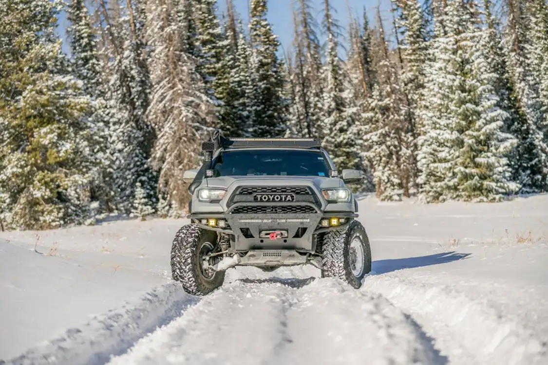 Up next Camping Summer Products Published on June 30, 2020 Author KELLY NOMURA Tags 2017 Tacoma TRD Pro, camping, off-roading, ROAM Adventure Co., Tacoma, Tacoma TRD, xpedition overland, Share article Facebook 0 Twitter 0 Mail 0 Fully Loaded Tacoma TRD Off-Road 2017 Tacoma TRD Pro Gets All the Things Three years ago, overlanding and the vehicle adventure lifestyle were new to Malcolm Tweed— but you’d think differently from the look of his Toyota Tacoma TRD Pro, conversations with him about off-roading, and his enthusiasm. Having grown up camping with his father on fishing trips, Tweed yearned to get back out into nature and relive those experiences. After some time deployed while serving in the Navy, he came back to the States with newfound knowledge about a different way of camping and exploring the outdoors. And like many before him and many who will follow, a simple truck purchase turned into much, much more. Inspired by the community via YouTube and Instagram, his new truck would soon take him on many adventures, deepen his relationship with his now-fianceé, Ali, and reunite him with the love of the outdoors. A New Passion While in the Navy Tweed was stationed in San Diego, but he didn’t get to see much of the city before he was deployed overseas. Not knowing how long he’d be gone, he sold his Volvo and figured he’d get something when he returned. Tweed returned from his deployment in December 2017, nine months later, and needed something to drive. He went to a dealership in Pacific Beach, California, and drove away with this 2017 Tacoma TRD Pro, used with 10,000 miles. A testdrive behind the wheel of the Tacoma TRD Pro and he couldn’t say no; plus he was able to negotiate the cost down to $45,000. He knew he wanted a truck. What he didn’t expect was to buy this truck and change just about everything on it, except for the engine. Subscribe to our weekly newsletter “… loving the vehicle you drive is more important than high mileage, so having the Tacoma as his daily driver is not an issue.” What started as some light online reading when deployed turned into a full-blown lifestyle shift—for the better. Tweed hadn’t seen much of California before he was deployed, so he was looking forward to exploring the state and all it had to offer. This welcomed change of pace kept him wanting to learn more. Through the beauty of the Internet and a desire to learn from others, he let Clay Croft and Xpedition Overland teach him through hours of video watching. He learned how he wanted his vehicle to perform and began taking the steps to make that happen. Tweed doesn’t consider himself an overlander by any means, but he saw an opportunity to transition into a new form of camping while being able to experience off-roading at the same time. He wanted to build a truck that could take him exploring for weeks on end and also be capable of driving on a variety of terrain in various conditions. The outcome is just that and more. Tweed’s Tacoma TRD Pro handles daily driving with ease and flexes its real capabilities when off the pavement. We could stare at that backside all day long. Snow-wheeling in Utah with friends brought the opportunity to use the recovery gear. The Build Tweed is no stranger to the wrench, or any tool for that matter. As a helicopter mechanic for some time in the Navy, fixing things and tinkering on the Tacoma came naturally—and we’re willing to bet Tweed wouldn’t have trusted anyone else but himself to work on his truck anyhow. He had a few friends help him out with some of the heavy lifting a few times, but he built this Tacoma himself. We can attest to that as we watched him on his Instagram story install a new bumper by himself. The Tacoma has the factory 3.5L V-6 but Tweed noticed that once he added a ton of weight to the truck with all his modifications he needed to do something to create more power. Ultimately, he decided the answer was to re-gear so he went with a 5.29 gear ratio from Nitro Gear. To create a smooth ride on the highway that’s also capable of rocky terrain, Tweed opted for ICON 2.5-inch extended coilovers with 700-pound springs and an external reservoir with adjusters. He also added Total Chaos uniball upper control arms to round out the suspension up front. In the rear are the ICON 2.5-inch double-bypass shocks with Old Man Emu Dakar HD leaf springs. There is also a cab mount relocation to give more clearance. “All my travels and adventures have been spent with my fianceé and we both have found a love for this style of camping and off-roading.” Touching the dirt and asphalt are Toyo Tires Open Country M/Ts in 315/75R-16 all the way around with a fullsize spare. Those rugged mud terrains complement the 16-inch fifteen52 Turbomac HD Classics with 0 offset. A fullsize spare sits on the C4 Rear Overland series high-clearance bumper. A little bodywork was performed to make room for the larger tires and still have enough clearance. Fenders and fender flares were trimmed and semi-tubbed wheelwells were added. The 21-day excursion across the U.S. from California to Florida brought Tweed and his fianceé many memories that they will cherish. In fact, C4 Fabrication protects this 2017 Tacoma TRD all the way around from wayward rocks and boulders or anything else that may creep up on it. C4 rock sliders run the sides while the C4 Hybrid series front bumper helps give the front end a clean yet protected look. Tucked behind the bumper is a Warn VR10S Evo Synthetic winch. If there is one thing this truck is lacking, it’s not lighting. The factory headlights were replaced with TacomaBeast sequential turn signal headlights. Up top on the Prinsu roof rack is RIGID Industries SR series 40-inch lightbar and peeking through the bumper is the RIGID Industries 30-inch SAE series lightbar. And the RIGID lights don’t stop there. There are numerous light pods around the vehicle, all RIGID, to light the way when the sun goes down and ensure Tw