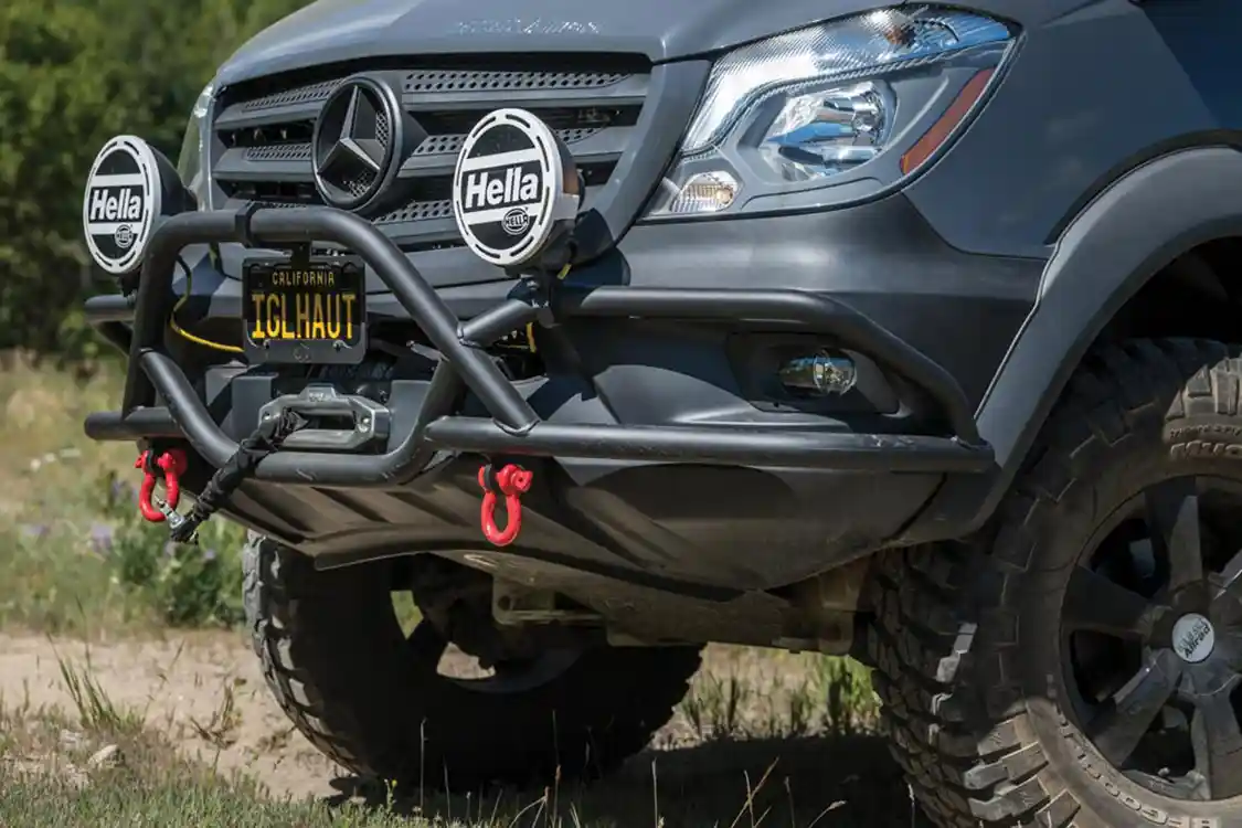 Up next Pants Engineered for Everyday Adventure Published on July 14, 2020 Author Bryon Dorr Tags 2017 Mercedes Sprinter, 4x4, all wheel drive, Bluetec Turbodiesel, Iglhaut Allrad, Off-road, Sprinter van, van, Share article Facebook 0 Twitter 0 Mail 0 Iglhaut Allrad Sprinter: Ultimate Off-Road Mercedes 4×4 Conversion Transforming A Two-Wheel-Drive Mercedes Sprinter into the Ultimate Off-Road Van With 15,000 miles on the odometer, Daniel Kuttner’s Iglhaut Allrad up-fitted Mercedes Sprinter has already proven itself on and off road. From cruising the autobahn at 110 mph to crawling the rocks of Moab, this beast has done it all with composure and confidence. “Allrad” is German for all-wheel drive. The Iglhaut Allrad 4×4 conversion system has transformed this basic two-wheel-drive Mercedes Sprinter into the ultimate off-road van. Your eyes aren’t deceiving you, this beast is rolling on massive 37-inch tires. The Limits of the Factory AWD System But before we get too carried away with visions of mud-slinging glory, let’s talk about where the factory all-wheel-drive Sprinter setup comes up short. Straight off the dealership lot, you can get your Sprinter with Mercedes’ standard AWD and traction control, or spring for the optional low-range transfer case. On paper, that sounds rugged. In practice, it leaves much to be desired for those with adventurous ambitions. Subscribe to our weekly newsletter Here’s why: Modest Low-Range Gearing: The stock low-range transfer case offers just a 1.42:1 reduction—enough for mild dirt roads, but not much help when you’re clawing up a steep slope or picking your way through boulder fields. That ratio simply isn’t low enough to truly multiply torque or control wheelspin effectively on tough terrain. Torque Split & Differentials: The system channels most of the torque rearward (65% rear, 35% front), with no locking center diff to really tie the axles together. If traction gets patchy and wheels start slipping, the system’s electronic traction aids step in—but not always with finesse. Traction Control Limitations: The 4ETS system uses brakes to limit wheelspin, but when things get seriously cross-axled or muddy, you may find yourself fighting more than forging ahead. In these moments, the system’s interventions often compromise momentum, and excessive wheelspin can leave you digging instead of driving. In short, the stock Sprinter AWD is solid for gravel roads, snow, or the occasional muddy trail. But if your adventures routinely lead off the beaten path—through deep ruts, loose sand, slick rock, or technical climbs—the limitations of the factory system show their face quickly. That’s exactly where an Iglhaut Allrad conversion takes things to the next level… The Iglhaut Story Let’s start at the beginning. Fritz Iglhaut was a truck driver in the ’50s who had a dream of building his own trucks, a dream shared by two of his four sons, Friedrich and Hans. They built their first truck in a clay mine after hours. By the ’60s, Fritz and Friedrich had built several trucks and Hans had become a master technician at Mercedes. The first Iglhaut Mercedes dealership opened in 1965 in Marktbreit, Germany. The dealership quickly gained a reputation for superior quality and craftsmanship, and a can-do special projects ethos. The business continued to grow, and in 1979, Iglhaut’s automotive fabrication division moved into its own facility. In 1983, Iglhaut was commissioned to build an all-wheel-drive Mercedes 207D for an alpine hotel owner, which proved to be so good that two more were ordered. This was the first AWD conversion on a Mercedes commercial vehicle, and led Iglhaut down the 4WD conversion business model they have today. Any terrain, any time. The Iglhaut Allrad Sprinter is ready to explore. By 1985, third-generation Michael Iglhaut was a Mercedes-certified automotive technician and working alongside his father, Hans, when an invitation arrived for the Liberty-Raid Rally, which went from Cologne to Khartoum to Cairo. Hans told his son, “You’re doing this.” With no rally experience and in his own creation, Michael came in Second. This impressive performance helped make Iglhaut a world-renowned name in the off-road community. Iglhaut Allrad USA While Iglhaut has kept busy in Europe, and has had special projects around the globe, they haven’t ever had a presence in North America. That all changed after Daniel Kuttner fell in love with a 1990 Mercedes 410 with Iglhaut AWD system. Kuttner has been fascinated with Mercedes vans for a long time, importing, daily driving, and selling many over the past 20 years. It all started with Mercedes firetrucks, which live their lives indoors, have low miles, and are constantly serviced and driven by professionals. In order to import them into the U.S. they had to be 25 years old, which is about the time German Fire Departments look to replace a vehicle regardless of miles or condition. Kuttner considers this a “match made in heaven.” “Being well-versed in the logistical nightmare of importing vehicles, Kuttner figured out how to make the ultimate Iglhaut 4×4 Sprinter a reality for U.S. customers—Iglhaut Allrad USA was born.” The last firetruck Kuttner owned was a 1990 Mercedes 410, the precursor to the Sprinter. The 410 was up-fitted with an Iglhaut AWD system. He purchased it in Switzerland with only 7,000 original miles on it. He drove it to the Abenteuer/Allrad Expo, the largest overland gathering in the world. At the show, he approached Iglhaut about opening the U.S. market for their awesome product. Van life elevated in this custom Sprinter. Kuttner thought, if he was to spend top dollar on a Sprinter buildout, why not start with the ultimate platform. He was tired of hearing, “All the cool stuff is in Europe,” at the North America overland shows. Being German himself and speaking the language opened the door for Kuttner to work out a deal with Michael Iglhaut for e