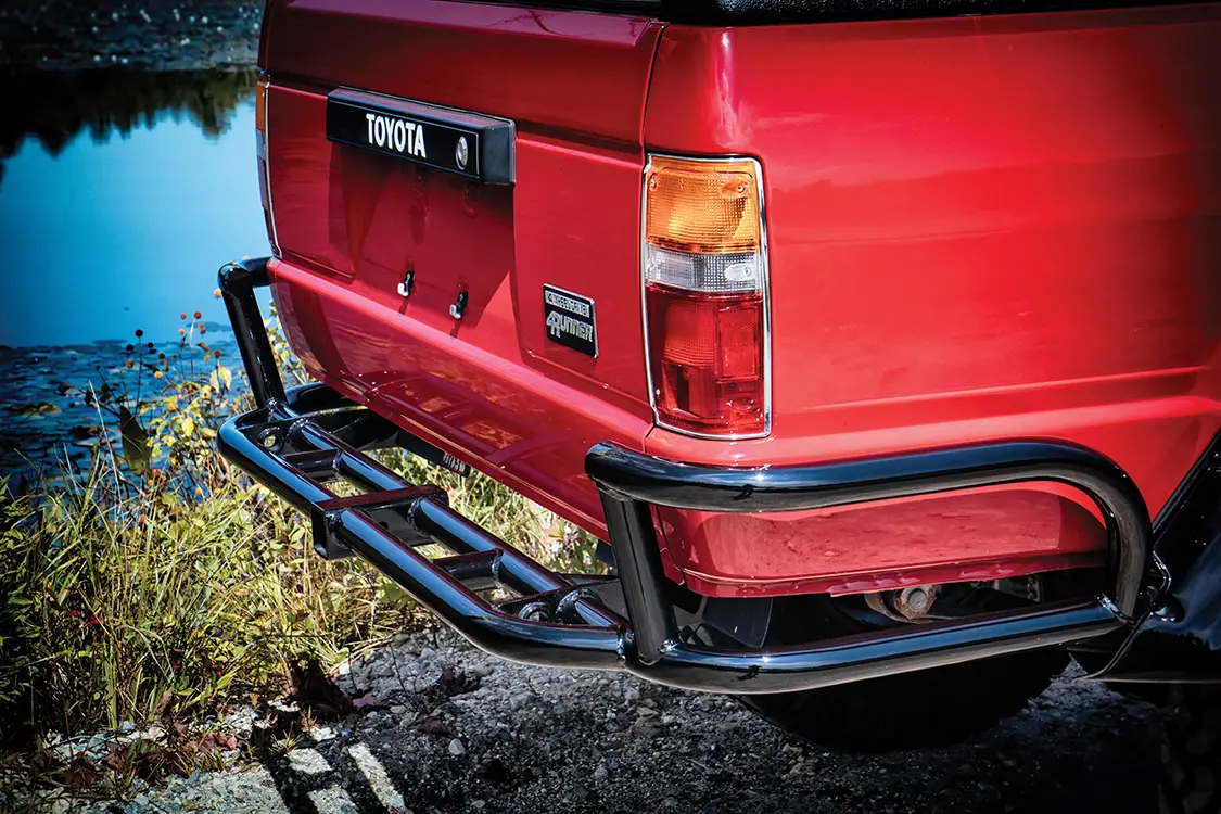 Published on December 02, 2025 Author Steve Wilson Photo Credit JOSHUA ELZEY Share article Facebook 0 Twitter 0 Mail 0 First Gen Toyota 4Runner Build: Upgrades, Specs & Off-Road Performance Toyota’s First Gen 4Runner Off-road enthusiasts have probably noticed that late-model Toyota trucks and SUVs have skyrocketed in popularity over the past few years. In a world traditionally dominated by Jeeps, Toyota’s line up of off-road capable vehicles are showing up on the trail in ever increasing numbers. As popular as its trucks are now, it can be easy to forget that Toyota’s long-standing relationship with off-roaders has spanned over half a century. Most notable of these classic Toyota’s are the Land Cruiser 40 series, or FJ40 for short. These boxy off-roaders are now considered collector’s items to many and the only way to cruise unpaved roads to others. Its legacy has carried over to many other models since then. In 1984, Toyota released its 4Runner SUV. It quickly won the hearts of adventurers and off-road thrill seekers with its ultra-capable HiLux derived underpinnings. Let’s fast forward 30 years from the introduction of the 4Runner. Steve Wilson’s shop, Wilson & Steely Kustom Coachworks, took in a couple vehicles on trade for a ‘42 Ford two-door sedan that they had hot-rodded out. One of those vehicles happened to be a clean ‘85 Toyota 4Runner SR5 that hailed from the high desert in Oregon. Subscribe to our weekly newsletter “IN 1984, TOYOTA RELEASED ITS 4RUNNER SUV. IT QUICKLY WON THE HEARTS OF ADVENTURERS AND OFF-ROAD THRILL SEEKERS WITH ITS ULTRA-CAPABLE HILUX DERIVED UNDERPINNINGS.” Based on experience with the Vermont Overland Club, the the end goal for this Toyota was to build a reliable and capable truck to take on many wandering adventures. Planned The truck was completely stock with the best part being that it was remarkably rust free. Although completely different from the hot rods and custom cars Steve and his crew at Wilson & Steely Kustom Coachworks normally worked on, this Toyota had plenty of potential to be something more. Visions of a reliable and capable truck to take on wandering adventures is what set the end goal, based on experience with the Vermont Overland Club. Steve has spent his time designing and building one-off hot rods, custom cars, and more recently, off-road adventure machines for all types of clients. Having the resource of a shop that can perform all aspects of the build under one roof is extremely helpful when planning any build. A plan was established, its drivetrain components would stay stock but rebuilt for ease of maintenance, while the suspension would be raised for added clearance, the use of more aggressive tires plus increased trail protection to protect the nice and clean original body. A roll cage was also added to protect the passengers, in case things get a little out of control. “STEVE HAD PREVIOUSLY RAN NITTO’S TRAIL GRAPPLER TIRES ON NUMEROUS TRAIL JEEPS WITH GREAT SUCCESS, SO HE KNEW THE TRAIL GRAPPLERS SERVICE THE 4RUNNER WELL.” Extra clearance and an enhanced ride were made possible by ditching the original leaf springs for ProComp four-inch lift springs and ProComp ES3000 shocks. Prepped With the 4Runner prepped, it was time to move forward on the required changes to meet the plan of action. First on the agenda was to get a long block, which was sourced from JIS Engines to replace the Toyota’s stock unit. The engine internals remained in stock form and an upgraded camshaft was installed for better low-end torque, while all drive accessories were refurbished and rebuilt. For the fuel induction, the stock EFI was ditched for a much-needed improvement. In this case, a FITech Go Street EFI 400hp system was installed on top of an Offenhauser four-barrel intake manifold. The Go EFI self-tuning fuel injection is rated at 400 hp, but is suitable for engines from 140 through 400 horses. This system is perfect for your everyday driver right up to your weekend adventure machine. The unit features a fast and accurate self-learning system, timing control, wet flow annular discharge and tons of additional features. “HAVING THE RESOURCE OF CAN PERFORM ALL ASPECTS BUILD UNDER ONE ROOF IS HELPFUL WHEN PLANNING ANY A SHOP THAT OF THE EXTREMELY BUILD.” Looking to catch some extra rays? The original fiberglass top is removable. To fire the motor, the ultimate ignition system was sourced from Davis Unified Ignition (DUI) systems. Featuring a high voltage coil and high dwell module, the all-in-one DUI drops in and only one 12v hot wire is needed for hook up making the unit reliable and very easy to service. Connecting the distributor to the plugs is a set of DUI live wires that feature high temperature sleeves to protect the wires up to 1400 degrees. Now that the ignition and EFI were simplified, a high-performance aluminum radiator from Champion Cooling was installed to cool the new motor. An OBX header was installed to help expel the exhaust gasses. The factory transmission and transfer case were only serviced and rebuilt where necessary. Both differentials were cleaned and inspected for reinstallation. The 16-inch KMC Enduro wheels were fitted with 285/75R16 Nitto Trail Grappler tires. Modified In order to increase the 4Runner’s off-road capability, a few modifications would be necessary. All four leaf springs were ditched for ProComp’s four-inch lift springs. To smooth out the ride, ProComp ES3000 shocks were installed on all four corners. Its increased altitude allowed for four 285/75R16 Nitto Trail Grappler tires to be fitted to 16-inch KMC Enduro wheels with clearance to spare. Steve had previously ran Nitto’s Trail Grappler tires on numerous trail Jeeps with great success, so he knew the Trail Grapplers would service the 4Runner well. Improved tire coverage was achieved by installing a set of Bushwacker pocket flares. For body protection, Trail Gear was contacted for a set of Rock Defense front and rear bu