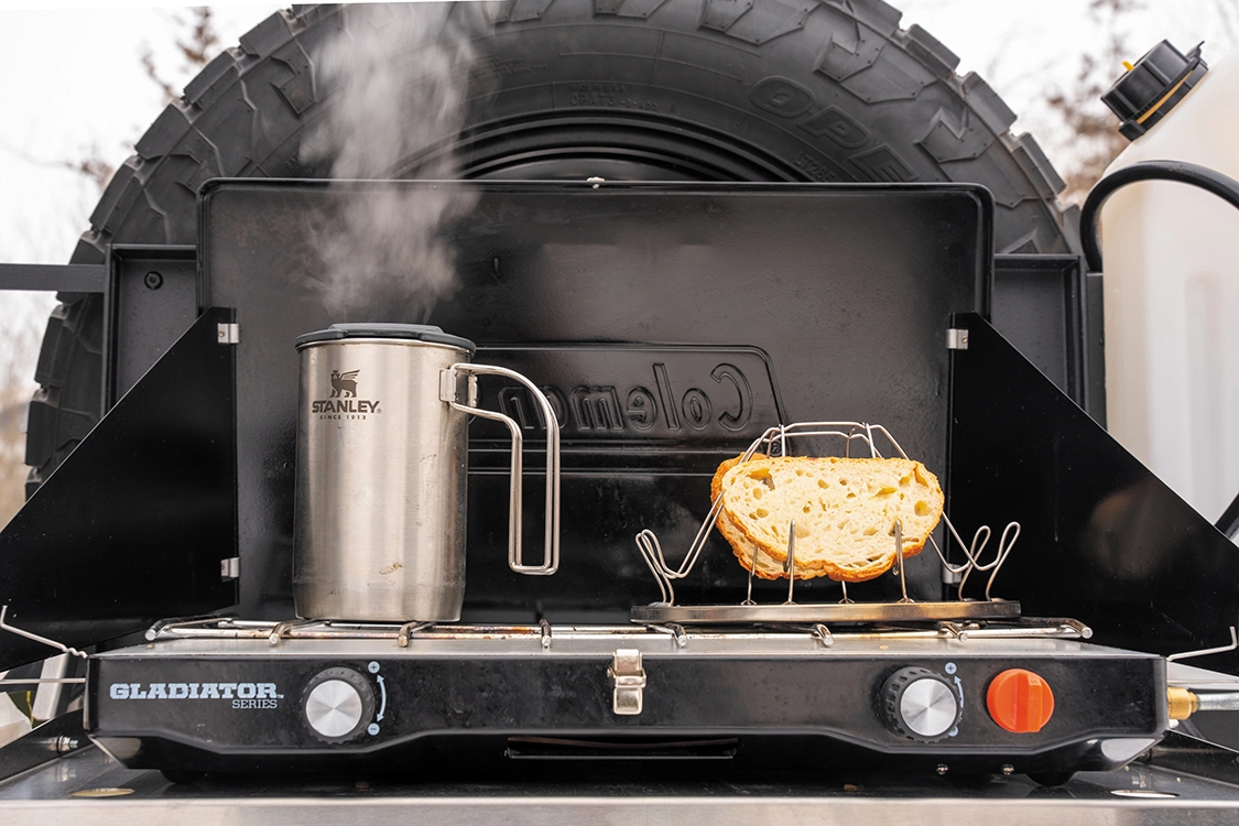 Up next Kaiden Cook’s Dream Build: A 1997 Toyota Land Cruiser Transformation Published on February 11, 2025 Author Dillon Houck Photo Credit Dillon Houck Share article Facebook 0 Twitter 0 Mail 0 Off-Road Gourmet: Simple Yet Satisfying Meals from the Back of Your Rig Forget Fast Food or Gas Station Munchies Journey with me into a memory as I paint a picture likely not unfamiliar to any off-road or overland traveler; you’re on the sixth hour of a multi-day drive, approaching the entrance gate for the BLM land on which you plan to set up camp for the night. Only about twenty more minutes of driving up a solemn dirt road, and you’ll reach your targeted coordinates and begin to set up camp. Now if you’re anything like me, after hours of sitting in the driving seat, two things are battling for dominance in your mind—getting out and stretching, and actually cooking your next meal. While a PB&J can go a long way in times of desperation, few meals compare to those prepped upon arrival in the great outdoors. With just a little pre-planning, even twenty minutes of effort combined with a few simple ingredients that are easy to keep on hand can yield tailgate cuisine that won’t disappoint. Subscribe to our weekly newsletter To prove my point, I’m going to run you through my simple yet satisfying menu plan from a recent overnight outing. This consisted of dinner on arrival, breakfast the next morning, and a late lunch before my return drive back to the unfortunate reality of an upcoming work week. Why Local Eats Deserve a Spot on Your Overland Itinerary Although I love cooking at camp, I’d be remiss not to mention the perks of treating yourself to a meal at a local spot along the trail. For one, breaking bread in small-town diners or roadside taco stands is an easy way to refuel without hauling out your entire kitchen kit—giving both you and your cast iron a well-earned rest. Sampling the fare unique to the region also helps you tap into the local culture. Whether it’s a bowl of green chile stew in Taos, fish tacos by the coast, or a slice of homemade pie in a prairie café, these meals introduce you to flavors—and stories—you simply won’t find on your tailgate. Beyond great food, there’s a community aspect. Spending your dollars in a mom-and-pop restaurant, food truck, or market stall supports the folks whose towns we pass through. It’s a simple way to contribute to local economies and show appreciation for the places that make our adventures possible. And let’s be honest: after a few days in the dust with instant oatmeal and trail mix, someone else doing the dishes is a little luxury that’s hard to pass up. Mind the Allergies: Planning for Everyone Before diving headfirst into the camp kitchen, there’s one crucial detail every trail chef needs to remember: food allergies and dietary restrictions within your crew. Nothing puts a damper on an evening around the campfire quite like realizing your signature creamy pasta dish doesn’t exactly sit well with half your group. A quick check-in before hitting the road can save you from culinary mishaps, like discovering your star meal is missing a key audience—or worse, sparking an unhappy stomach on the trip. Whether you’re carting along almond butter, grilling up sausages, or are ready to whip up a cheese-laden feast, making sure everyone can enjoy the meal keeps the adventure inclusive and worry-free. A little attention to everyone’s needs means full bellies, happy campers, and no need to scramble for backup snacks at the last minute. The Camp Chef Role: More Than Just Cooking But before we break out the spatula and cast iron, let’s talk about the unofficial title coveted by many but achieved by few: the “Camp Chef.” If you’ve ever been hailed as the culinary hero of your group, you already know the feeling—everyone’s hungry, you’re at the center of the action, and the sizzle from your skillet is as anticipated as the sunrise over the canyon rim. Being the Camp Chef isn’t about having formal training or Michelin stars. It’s about being the person folks trust to turn a bag of groceries (or, let’s be honest, whatever’s rattling around in the cooler) into a meal that makes memories. Maybe it’s pulling off breakfast hash in a snowstorm, or wrangling together a one-pot dinner after a day on rough trails. The reward? Smiles around the picnic table, full bellies, and, more often than not, an open invitation on every trip. This recognition isn’t about perfection—it’s about effort, a dash of resourcefulness, and the confidence to swap instant noodles for something a touch more memorable. The Camp Chef lifts spirits, fuels adventures, and—most importantly—proves that the best cuisine requires little more than fresh air, simple ingredients, and a willingness to embrace the unknown. Before we get to the menu, let’s first talk about the tools of the trade – what I use to feed myself out of the back of my rig. My camp cooking setup consists of the following: My stove is a tried-and-true Coleman Classic 2-burner camp stove I got from my grandmother for my 17th birthday. Propane comes from an Ignik 5-lb mini-tank mounted to my swing-out rear tire carrier. It’s refillable and also fuels my ammo-can burn-ban-compliant campfire, which eliminates the waste of those little green bottles! For cookware, I have a couple of thrifted but reliable cast iron pans and a Dutch oven. I also thrifted a Stanley stainless French press for boiling water and making coffee. Multipurpose pieces save space!I keep my food in a Dometic CFX35 12V fridge, powered by a 150ah Optima Lithium battery and charged by a 130w solar panel. I couldn’t camp without REI’s $5 plastic egg crates. I keep my basic dry food in my rear compartment cabinets, but you could use an insta-crate or even old milk crates. I also keep a sharp knife, a set of utensils, and Ziploc bags to store all the food I will be preparing or for any le