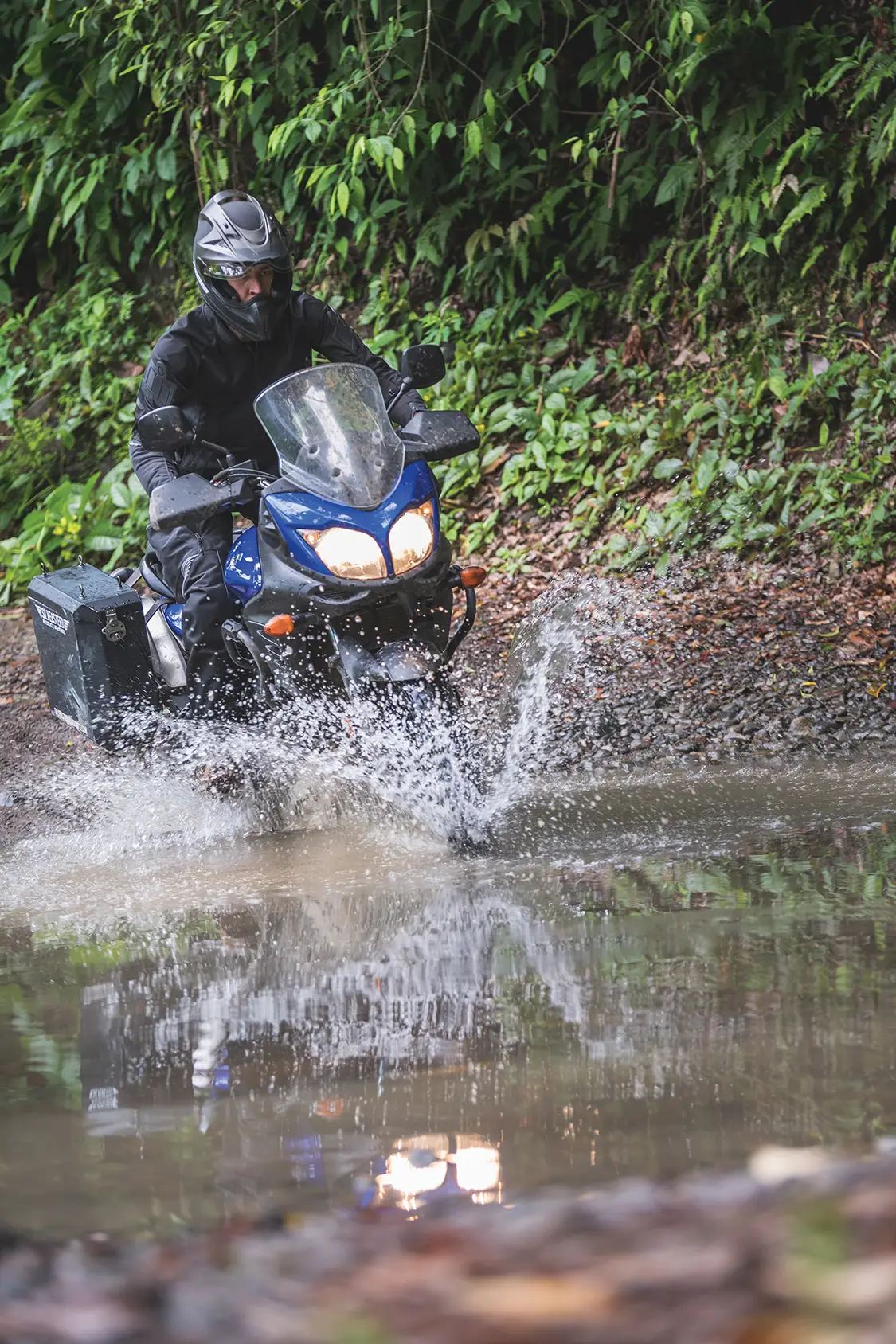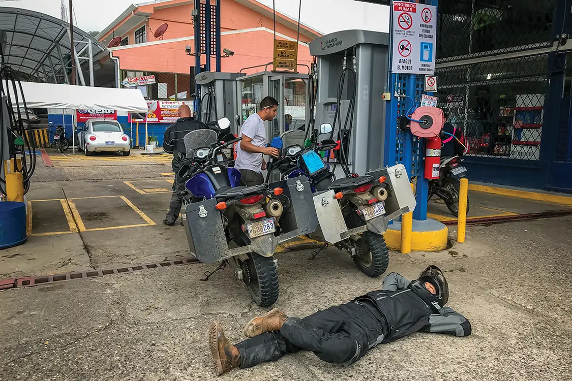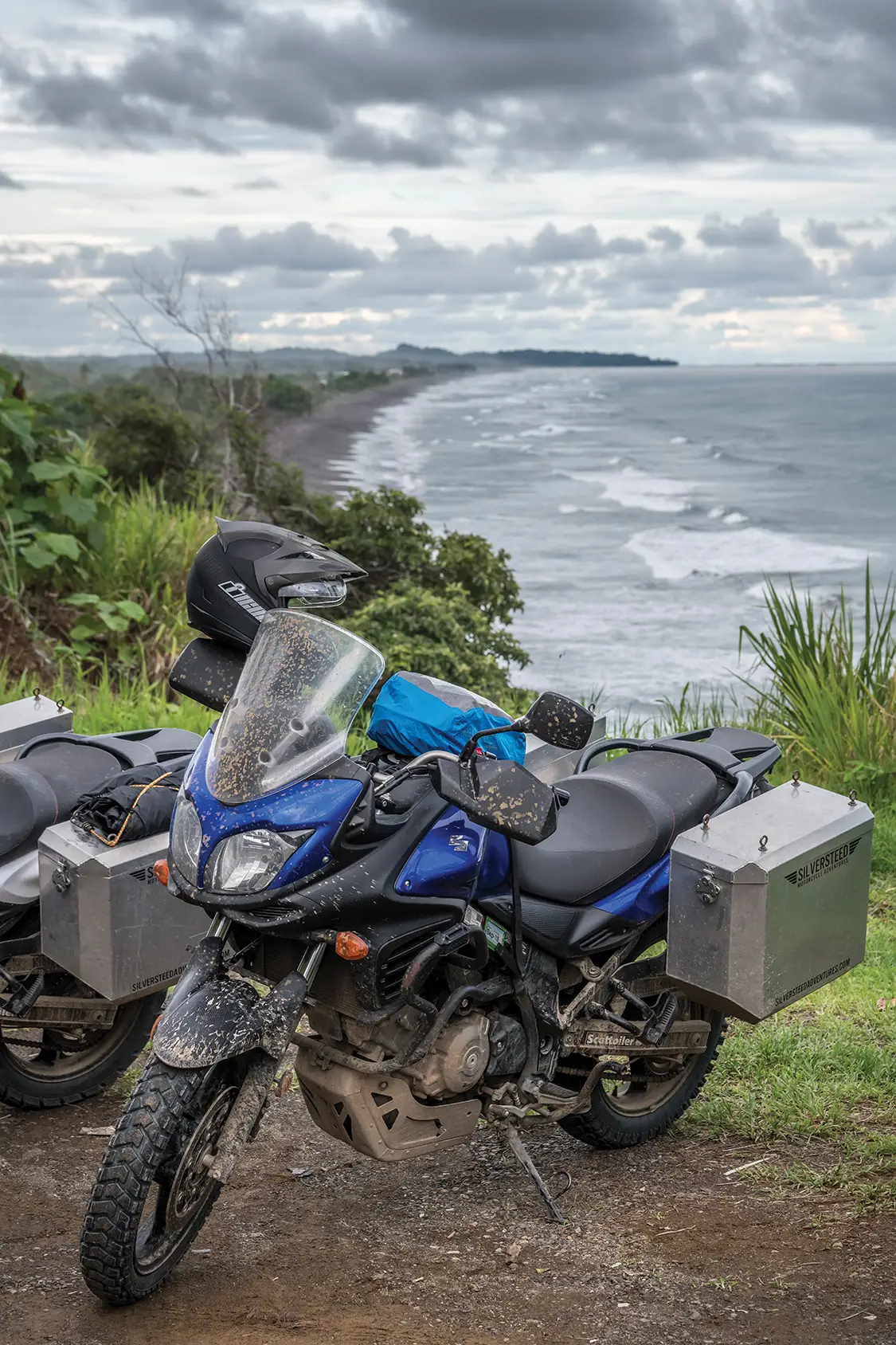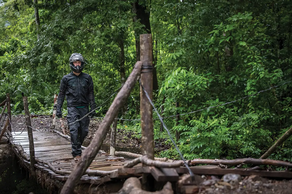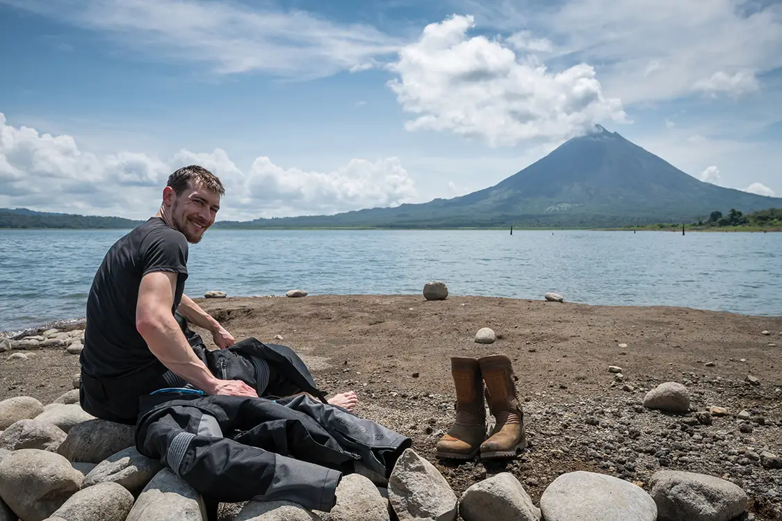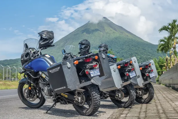 Published on January 29, 2026 Author Bryon Dorr With Assistance by Nick Schoeps Photo Credit BRYON DORR WITH ASSISTANCE BY NICK SCHOEPS Share article Facebook 0 Twitter 0 Mail 0 Adventure Motorcycle Touring Through Costa Rica’s Backroads Adventure Motorcycle Touring With Silversteed Adventures When you imagine Costa Rica, you’ll likely picture white sand beaches, fun surf waves and exotic rainforest. My last experience there fifteen years ago encompassed all of that, as well as lots of whitewater kayaking. What you probably didn’t imagine is how jaw-dropping and perfect the Costa Rican backroads are for adventure motorcycling. In late May, my friend Nick Schoeps and I landed in San Jose for seven days of guided adventure motorcycle touring with Silver-steed Adventures. We’d planned to slide in just before monsoon season, but mother nature had other plans. Subscribe to our weekly newsletter Muddy bikes and cloudy skies let you know that good times were had! Silversteed Adventures Silversteed Adventures is a two-man operation with about seven motorcycles. The company started in 2014, offering motorcycle rentals and guided tours throughout Costa Rica and Panama. Silversteed has some awesome itineraries to choose from and can tailor trips to your group’s needs, skills and desires. Nick and I opted for the “Pura Vida Tour,” with some small modifications due to our skill levels, the weather and our desire to find surf. Our tour started and finished with travel days, while packing in five full days of two-wheeled adventure. Silversteed is a full-service guide company that takes care of airport transfers, hotels, breakfasts, lunches and fuel. You’re responsible for air travel, dinners and any extra excursions you might want to indulge in. “AFTER DESCENDING THE MOUNTAIN, WE HOPPED ON THE HIGHWAY AND MUSCLED OUR WAY THROUGH THE URBAN SPRAWL AND CONGESTION OF SAN JOSE. LANE SPLITTING AND RIDING ON THE SHOULDER IN TRAFFIC ARE JUST PART OF MOTORCYCLING IN COSTA RICA.” Not a bad idea to test out questionable terrain on foot before attempting on moto. The Motorcycles The Suzuki V-Strom 650 is Silversteed’s moto of choice. Under my 6’3” frame, it is tiny, especially compared to my personal steed, a KTM 950 Adventure. Nick’s about 5’10” and rides a Yamaha 250 at home, so the “Wee-Strom,” as it’s known, was a big step up for him. While not particularly exciting, the VStrom 650 is super easy to ride, extremely reliable and a good compromise to handle a wide range of terrain. It is about perfect for the combination of gravel, mud, potholes and glassy pavement that you’ll experience across Costa Rica. “THE PURA VIDA TOUR GIVES YOU THE MOST DIVERSE COSTA RICA ADVENTURE YOU CAN REASONABLY FIT INTO FIVE PLUS DAYS OF RIDING.” Silversteed has upgraded their fleet with several key modifications. They run a 70/30 street biased tire to best handle the wide range of conditions you’ll encounter. An upgraded skid plate is also fitted, which we put to the test when encountering many hidden rocks in murky stream crossings. The motorcycles are also fitted with custom-made hard aluminum panniers. The boxes are bolted-on, making them more secure over your normal removable pannier setup; however, they do require you to empty the contents each night at your hotel, as opposed to just carrying in the removable pannier. Everything is a compromise in moto life. Be sure to relax and stretch when you’re off the bike. Getting There The first day of the adventure is a long travel day. Nick and I flew in from different parts of the US, but luckily the travel gods shined brightly upon us, as we had no delays and landed mere minutes apart. It was evening time: hot, humid and raining. Our guide and co-owner of Silversteed Adventures, Chad Groff, picked us up and drove us through the congested evening city traffc to a nice little hotel on the outskirts of the San Juan metropolis. The onsite restaurant provided much needed sustenance and cold beverages while we decompressed from a long day of travel and got to know our guide. Do as the locals do. Wait out the downpour under shelter. Taking Off On Two Wheels An early start saw us reviewing our route over breakfast. It’s full of waterfalls, volcanoes, beaches and a wide mix of paved, gravel and dirt roads. The Pura Vida Tour gives you the most diverse Costa Rica adventure you can reasonably ft into fve plus days of riding. The air is thick, but it’s not raining. We pack and repack our panniers, getting accustomed to our new two-wheeled friends. We take a quick few laps around the hotel parking lot getting use to our fully loaded adventure steeds, before blasting onto the busy Costa Rican roads. Luckily, we quickly leave the congestion of the city behind as we cruise up into the mountains towards La Fortuna. “IT WAS A CHALLENGING RIDING FOR US ALL, ESPECIALLY AS DARKNESS FELL. IT WAS NICK’S FIRST TIME RIDING IN THE RAIN, SO HE WAS PROBABLY THE MOST GRATEFUL WHEN WE ARRIVED AT OUR STUNNING MOUNTAINSIDE HOTEL FOR THE NIGHT.” Into The Mountains After checking out a few roadside waterfalls, we stop at a massive 230-plus foot fall. It’s a multi-hundred-step descent into a jungle canyon to stand at the base of this behemoth, but the views are worth the effort. While we did it in moto riding boots, I’d suggest swapping out to more comfortable footwear for the steep hike. After a quick lunch, we continued our carving assault on the curvy mountain roads. We were about 15 km from our hotel when the deluge began. We timed it perfectly and rolled under the tin roof of a gas station as the rain started. After a nap, some coffee, and the better part of an hour we accepted the inevitable. We suited up as best we could for the intense rain and pressed onward. Anticipate all types of riding conditions in Costa Rica. It was a challenging ride, especially as darkness fell. It was Nick’s first time riding in the rain, so he was probably the most gra