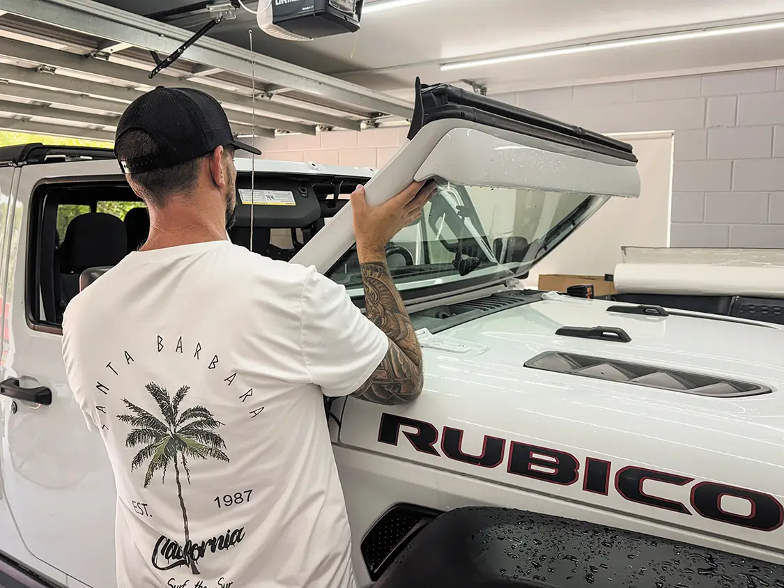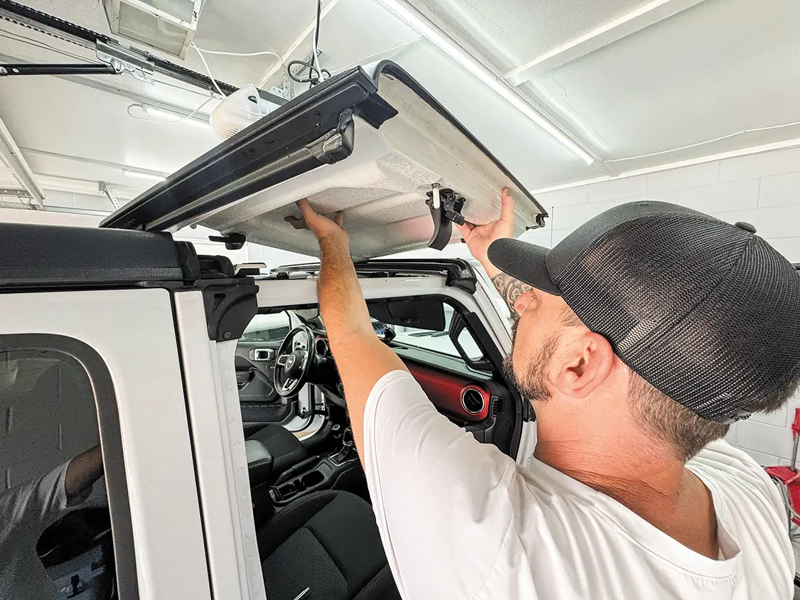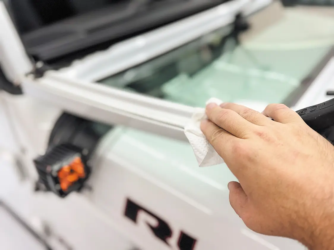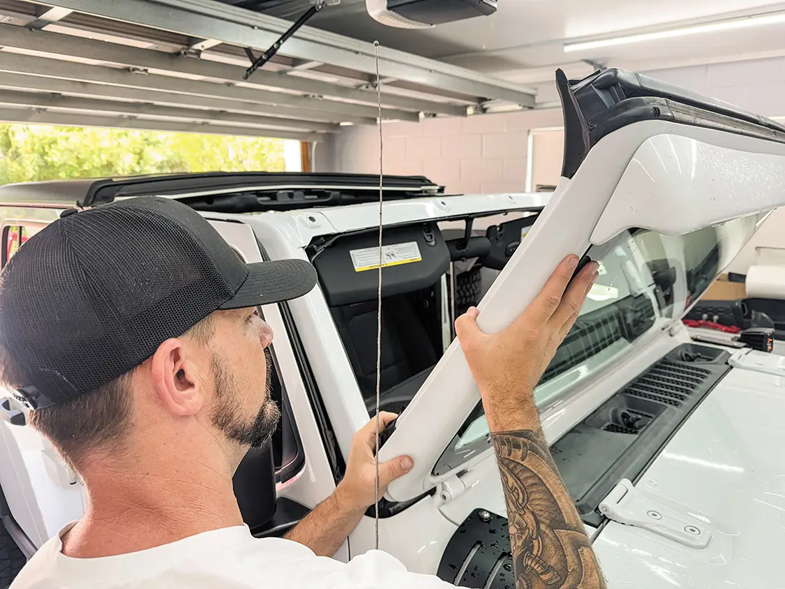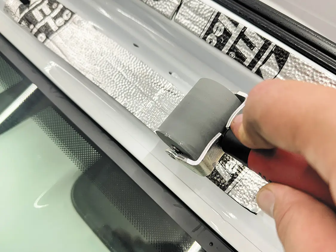 Published on April 23, 2026 Author Chris Hamilton Photo Credit Chris Hamilton Share article Facebook 0 Twitter 0 Mail 0 Jeep Sound Deadening Made Easy With Thermo-Tec AS SEEN IN OUR MARCH/APRIL 2026 ISSUE – Buy Now! Installing ThermoTec’s Sound Deadening Material If you’re a Jeep owner and you like to take road trips, you undoubtedly have an interest in some sound-deadening tips to quiet the interior for those long drives. We’ve tried all the basic tricks like tightening the T-tops, turning up the radio, and trying different sets of tires, but it’s time to step it up and turn to a company that specializes in just these types of problems. Thermo-Tec is well-known for its sound-deadening and heat products, and we were excited to test them out on our daily-driven Jeep Gladiator. The idea is to fill all of the seams in the windshield surround, make note of the results, and then move onto some under-carpet and door panel treatments. This project was a simple single-day process—it only took a few hours, and we were able to do it in our garage. A few basic tools, some patience, and the right product made a massive difference in the long-range drivability of our Jeep. This is one upgrade we highly recommend to avoid having to buy headphones to drown out the noise. Let’s jump into it, and then you can head over to Thermo-Tec’s website and order your kit today. Subscribe to our weekly newsletter Sources Thermo-Tec —https://thermotec.com/ Our Jeep Gladiator is a fun daily driver that has some basic customizations, including a lift kit and bigger tires, which always adds extra road noise. But we know that the majority of our problem comes from all the cracks and crevices around these vehicles that need to be filled. The first area we’re going to focus on is the windshield surround. These vehicles are designed for the windshield to fold down like the original Jeeps, which is a fun option, but it definitely affects the quietness when driving . To get this project started, we pulled into our garage and first took off the T-tops. Next, we simply took out the screws that hold the windshield in place and set them aside for reinstallation upon completion. With the screws removed, it’s easy to simply fold down the windshield and start preparing our material. Before we apply the material using the adhesive backing, we clean the area around the windshield with some rubbing alcohol to make sure there’s no dirt or debris that will affect the longevity of this product. We also decided to run a bead of silicone in the seam of the windshield to prevent any air from being trapped and causing a whistling effect. at before and after look at the silicone we added into the seam of the windshield. For this project, we chose the suppressor material from Thermo-Tec. This material excels in environments where both sound and radiant heat control are important. This mat combines a polyethylene film with a durable foil surface, providing shielding against radiant heat up to 2,000°F and direct temperatures up to 300°F. The material has an adhesive backing, making it easy to apply to a clean surface. Now it’s time to attach the suppressor material from Thermo-Tec. They also offer these great rolling tools to make sure it lays flat with no gaps. We simply cut the material to size and roll it onto our clean surface. The material molds to our curves perfectly with no force needed. After only about 30 minutes of work, we were able to cover the entire sealed area of our windshield, and it’s ready to attach back into the original position. With the windshield back in place, we can now reattach the windshield wipers and take it for a test drive. What better place to take it to than the beach, where there’s plenty of wind and a relaxing road trip to get there? We were highly impressed by how much quieter our vehicle is now. This product was the perfect solution for our problem. If you have a Jeep Wrangler or a Jeep Gladiator and you’re tired of the road noise, definitely consider this modification using products from Thermo-Tec.