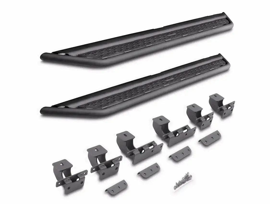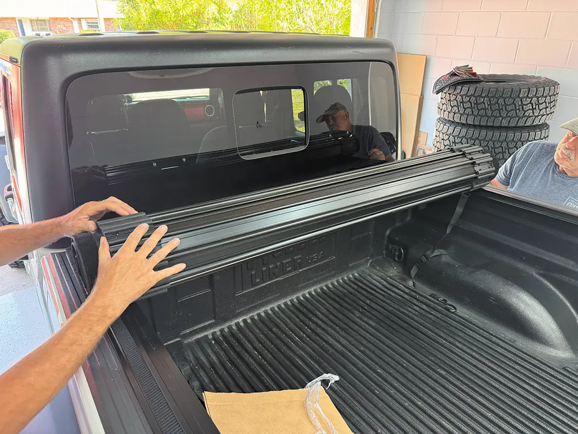Published on October 28, 2025 Author Chris Hamilton Photo Credit CHRIS HAMILTON Share article Facebook 0 Twitter 0 Mail 0 Bolt-On Upgrades That Transform Your Jeep Gladiator The Battle of the Bolt-ons If you’ve got a Jeep Gladiator, congrats! You’ve got one of the most versatile rigs on the road. But let’s be honest, straight off the lot, it still needs a little help in the style and function department. The last issue of TREAD focused on setting the perfect stance and adding a killer set of wheels and tires. In this tech article, we’re diving into a couple of key bolt-ons to get this 2020 Gladiator looking sharper and working harder. First up, we’re tossing on a set of Dominator D6 running boards from Go Rhino. These steps don’t just look tough; they’re wide, flat, and ready to take a beating, perfect for helping you climb in and out without scuffing up your rockers or busting a shin on the way out. When we started, our Jeep was at stock height, but after installing a new lift and bigger tires in the last issue, we will definitely need some steps to get in and out easily Out back, we’re locking things down with a TruXedo Sentry CT tonneau cover. This bed cover has a low-profile look that sits flush and sleek, but don’t let the clean lines fool you. It has a tough aluminum core wrapped in industrial-grade fabric, ready to keep gear secure and dry. Whether you’re hauling tools or camping gear, this cover’s got you covered, literally. Now, we’re not stopping here. In an upcoming issue of TREAD, we’ll be throwing on a new set of bumpers on this Gladiator as well as some lighting upgrades, but that’s a whole other write-up. For now, let’s tackle the task at hand. All parts in this article are available at RealTruck.com. Call them at (877) 216-5446 for more info or to place an order. Subscribe to our weekly newsletter The first thing we are installing is TruXedo’s Sentry CT cover, which offers sleek, low-profile protection with industrial-grade strength—perfect for locking down your gear without sacrificing style. Our Jeep Gladiator came with a nice drop-in bedliner, but our stuff still gets wet in the rain, so a new rolling bed cover from RealTruck was a must-have. These brackets come with the bed cover, and the instructions make it look easy to install. We will see! We need to trim our plastic bedliner in order to access the predrilled holes in the bed. Now we slip in the rubber plugs provided with this kit before mounting the bracket. The brackets are powdercoated and ready to install right out of the box. Next, we repeat the process on the passenger side. After they are bolted in, you can see how they sit flush with the bed rails. Moving to the rear, we again need to trim the bedliner for the rear brackets. Bolting up the rear brackets is easy thanks to the templates and hardware provided by RealTruck. Here’s a great look at the rear brackets installed. The bed cover rails are installed next using an Allen head bolt and the nuts provided. With the top of the bed rails connected, we can attach them to the rear brackets. Now the fun part! The roll-up bedliner can be set into place. This pic is from the manufacturer, and it shows just how nice this cover looks when closed. Go Rhino’s Dominator D6 running boards add rugged side protection and a wide, flat stepping surface—perfect for climbing in and out of your Gladiator with ease and attitude The first step is to insert these bolts and plastic washers, which help secure the bolts while adding the step brackets. The first bracket can be installed over both bolts. Then we can secure the frame-mounted brackets with the nuts that came in the kit from RealTruck. With all the brackets installed, we can now move on to mounting the steps. Keep everything loose until all the bolts are installed, and then you can fully tighten them all. The driver and passenger side have all the same steps, so there’s no reason to get too detailed here. We had both steps installed in under an hour and a half. In the next issue we will focus on updating these plastic OEM bumpers and adding some upgraded lights! Stay tuned…