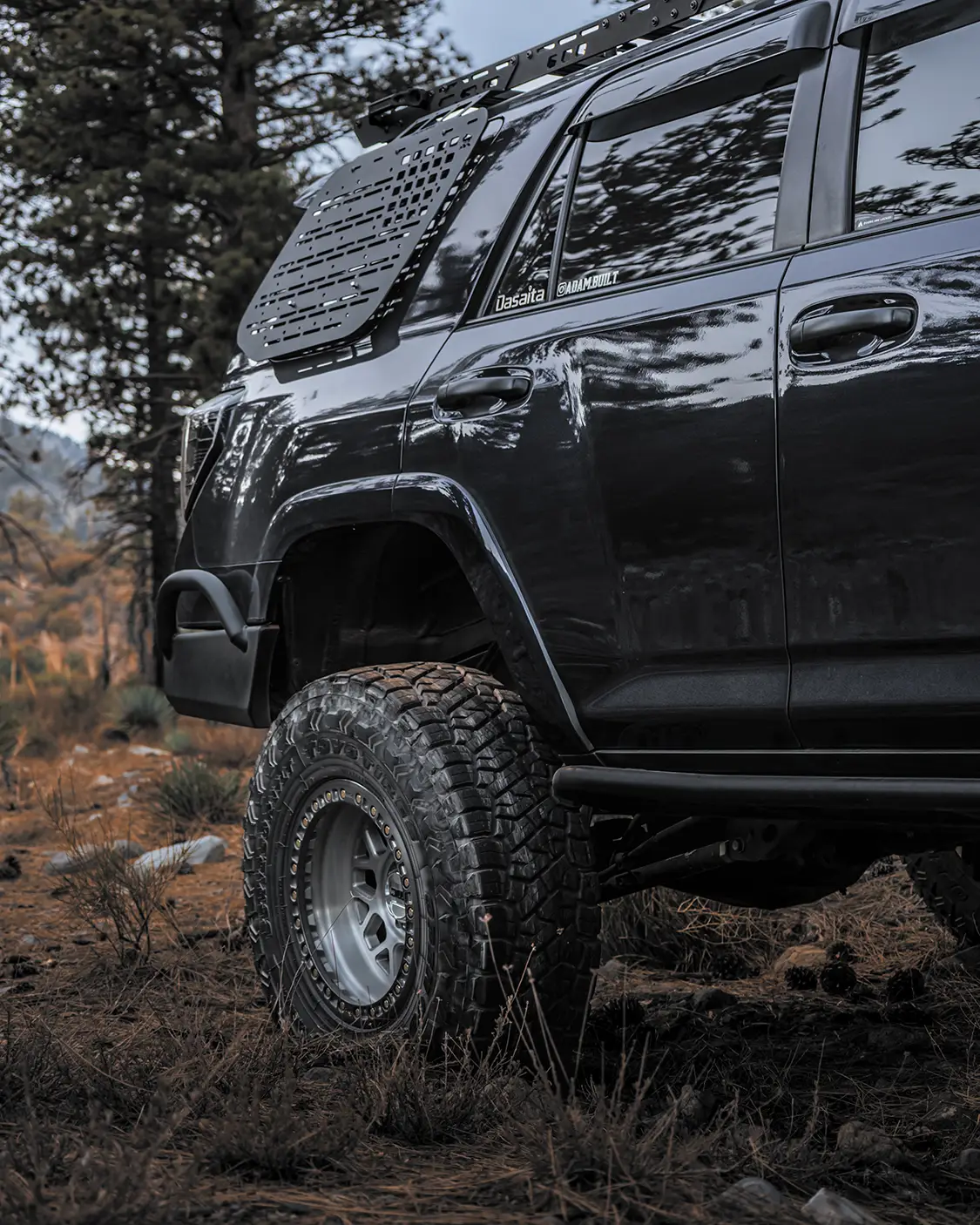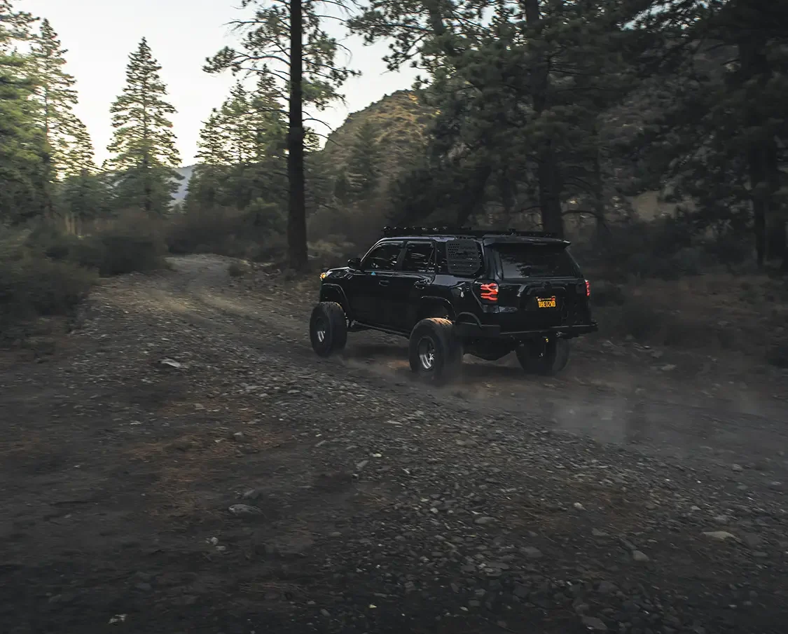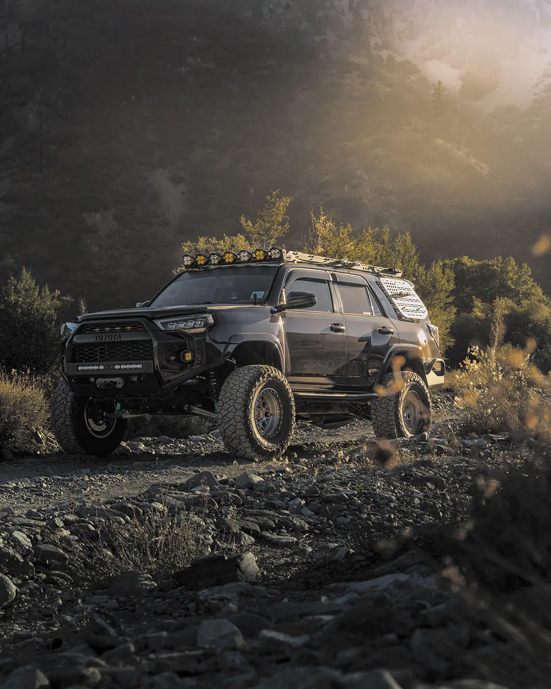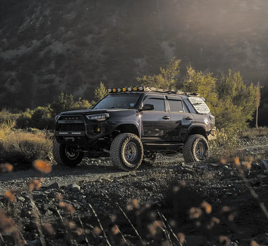 Published on January 30, 2026 Author Chad Dougla S Share article Facebook 0 Twitter 0 Mail 0 A Family-Built 4Runner With No Compromises 4Runner Of Exotic Features Meet Adam Nguyen, a Southern Californian based out of Fountain Valley. Adam is the builder behind this Nautical Blue Toyota 4Runner. This truck isn’t just a random build for fun and capability; Adam sold his custom 4th Gen 4Runner to build a family vehicle for himself, his wife, and kids to go out and have fun in! The exterior features on this rig include AlphaRex MK II Nova Series headlights, a Vidal Metal Worx Nighthawk 5G front bumper with its clean and slick look providing its high clearance needs, and McQueen 4-inch fiberglass fenders to give it that wide feel when cruising. The 4Runner’s exterior has also been upgraded with a Bison Gear roof rack with a table and best-in-the-business illumination from Baja Designs, including a linkable LP4, RTL, S2s all around, and a 20-inch S8 light bar. Now, let’s get into some other details and look at the 4Runner’s impressive suspension system. Starting in the front is a Total Chaos long-travel kit with King shocks and 600-pound springs to keep all that weight up when going through rough terrain. This long-travel kit is the 3.5 option, which offers a wide range of street and off-road capability. The coilovers in the front measure 2.5×8 inches with 3.0×8-inch Pure Race bypasses. Rocking in the rear is a big set of 2.5×14-inch custom bypasses, also made by King. Surrounding those shocks is a set of Total Chaos upper and lower control arms, allowing maximum travel and wheel management in the front. Total Chaos tab gussets and Apex Chassis tie rods keep the steering on that independent suspension stout through hard corners and berms. DuroBump stops in the front and rear provide soft and slow compression towards the end of its shock life. Also underneath this rig is a set of skid plates, but not just an OEM kind. Adam’s 4Runner is rocking a Vidal Metal Worx full skid plate to stop junk and debris from potentially damaging vital parts of the vehicle. Subscribe to our weekly newsletter Jumping into this build a little more reveals a set of trusty PRP limit straps to keep the shocks from overextending when fully drooped out! An Agency 6 shackle block and fairlead, in combination with the Superwinch 10,000-pound winch, have also been added up front. Keeping the edges clean and protected is a set of Westin Automotive sliders composed of pure beef and sleek looks. Keeping the vehicle in motion is a set of Toyo R/T Trail tires in a staggering 35×12.5R17 size, and they are wrapped around a set of 17×9 KMC Grenade beadlocks in a -38 offset. Helping push those big rubbers around is a Toyota 4.0L V6 built and managed by The Overland Shop and Shift Autowerx in Santa Ana, California. Keeping this four-liter breathing and turning hot to cold is a K&N cold air intake, and belting out a sweet tune is a Magnaflow Overland Series exhaust system. Running through the tech department also uncovers a JS alternator, a Switch-Pros 9100 switch system, Agency 6 tie-downs, and an Optima battery that keeps that power stable and reliable in all weather conditions—sitting or driving! A MinWin fuse box riser and an Acumen Camera dash cam have also been added to capture all the crazy things happening on the roads of California. Keeping the wheels turning and properly lubricated is a set of Premier West Gears with a 5.29 gear ratio and Eaton ELockers, which are the same lockers I run in my own personal rigs! Just flip the switch and you’re ready for trails, and with another flip, you’re back on the road cruising. Bringing all this gearing to a halt when hauling the mail out in the desert are R1 Concepts braking components in the front and rear from its off-road/tow performance brake pads and rotors with all-new brake lines to boot. From front to back, top to bottom, and inside and out, there is no shortage of creativity and thought put into this build. We thank Adam for allowing us to feature this beauty and to be able to create something special for all to enjoy and learn about. If you see Adam out on the trails or just driving around town, say what’s up to him for us! Until next time, keep that tread off the pavement!