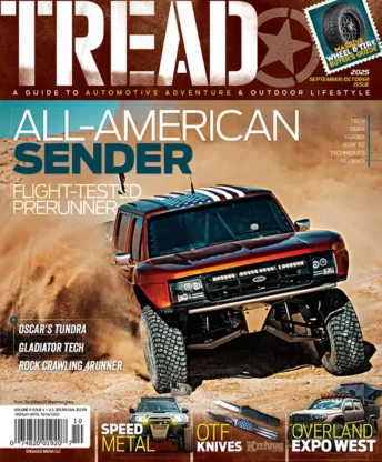 Up next Letter from the Editor Nicole Hamilton Published on September 29, 2025 Author Devan Ence Share article Facebook 0 Twitter 0 Mail 0 Full Send into Fall: The September/October Issue is Here! Time to go FULL SEND! With all the time exploring and adventures being had, this year is truly flying by! Don’t worry—there is still plenty of time to get outside and enjoy the nice weather. Our September/October issue is packed with awesome events and features of every kind and should be a page-turner. Evan shares the true experience of Speed Metal, take a trip with Chris to Jeep Beach, and head out to the Overland Expo West with Dillon. We have some incredible feature builds here, including All-American Sender’s flight-tested prerunner, a 4Runner built to crawl, Chris’s epic C10 to take on any terrain, a built-to-destroy Tacoma rock crawler, and Oscar’s wild Tundra. Each of these builds has its own special touches, and we are pumped to share them with you. Subscribe to our weekly newsletter We also have a couple of great tech articles for you! We introduce the American Gladiator build with its first parts installation and a look at how John is stepping up the game with his Tacoma. Of course, we’ve got all of your favorite columns too—Made the Cut, Tread on Trails, Outfitted, and Gear Box—each packed with the latest gear, accessories, and destination inspiration for your off-road lifestyle. Share your adventures, photos, and stories with us at tread.com. Whether it’s a weekend run or a bucket-list expedition, we love seeing what you’re up to. You can also tag us on Instagram @tread_magazine whenever you post! And if you’ve got an unbelievable build or an unforgettable journey in the works, don’t hesitate to reach out. Email me at dence@engage.media. I’d love to hear about it. There are still so many adventures ahead, and I can’t wait for each one! KEEP ON KEEPING ON! Happy trails, Devan Ence