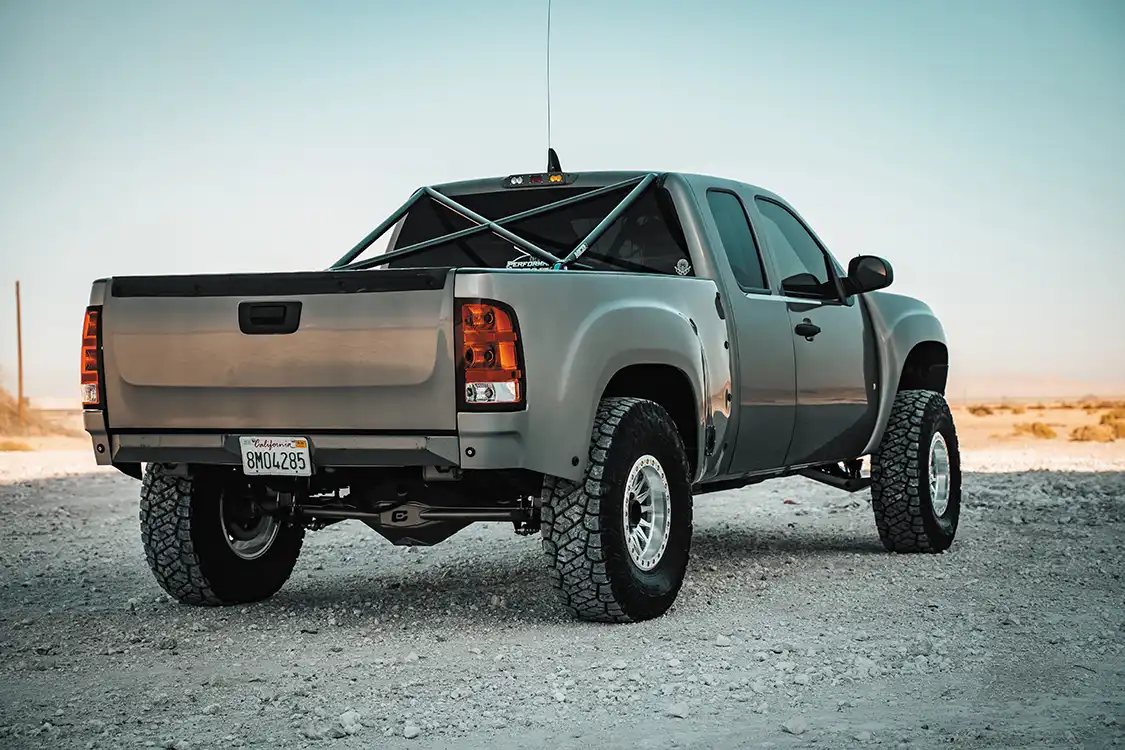 Up next 2024 Tacoma Gets an ICON Stage 4 Suspension Upgrade Published on April 23, 2025 Author John Mata Jr. Photo Credit Garrett Spicer Share article Facebook 0 Twitter 0 Mail 0 Taylor Gang’s 370ci LS-Powered GMC Sierra The Taylor Gang’s Off-Road-Ready GMC Mason Taylor is a lifetime addict of all things related to having a blast in the great outdoors. Whether it be in the desert or at the river, there’s never a bad day spent outside—especially if he’s surrounded by family and good friends. Hailing from San Diego, California, Mason constantly finds himself torn between which direction to head next. The SoCal area surrounds him with so many unbelievable dream locales to take full advantage of. Sometimes choosing which one to hit next can be a dilemma. One thing he never thinks twice about when it’s time to hit the road, however, is what vehicle to drive to get to where he’s going. Mason has been on a steady mission to build up his 2007 GMC Sierra since 2013. Creating an off-road-ready rig that he and his family can hop in and have a good time in has been a top priority—one that has finally paid off in a BIG way. Subscribe to our weekly newsletter Since trips to the sand and other off-road conditions are so common for the Taylor family, Mason figured it was a good idea to outfit his GMC with a heavily upgraded suspension setup. He wanted his truck to be able to conquer any type of terrain, and to do just that, he reached out to Mazzulla Offroad for advice. With proper guidance, Mason sourced the correct components he’d need from trusted manufacturers such as King, Eibach, Deaver, Mazzulla, and Richer Racing to transform the GMC into a rough and rugged machine capable of handling the Glamis Dunes with ease. Once the ride height was dialed in, Mason finished off his truck’s chassis with a set of KMC Impact forged wheels and Predator New Mutant X-RT tires. This combo ensures that the truck can sail through sand, dirt, and other such conditions without hesitation. For safety’s sake, Mason opted for a roll cage from Morgan Clarke Designs (MCD1), a bed cage by CWF Offroad, and an engine cage from SMP Fab for good measure. When it comes to keeping the family and essential components well-protected, it’s never a good idea to cut corners. Powering the Taylor family rig is a 2013 LS2 that Mason scored from Moruzzi Race Motors. The engine has been upgraded with long tube headers, a 3-inch exhaust system with a custom side exit, and is backed by a beefed up 2013 4L85E transmission that is ready to rock. New front race hubs from Mazzulla and a Currie rearend with a Camburg 3-inch full-float housing also do their part to increase the GMC’s propulsion through the rough stuff. To increase the good looks of the GMC, as well as to allow for adequate wheel and tire travel, Mason selected FiberwerX fiberglass fenders and bedsides all around. Sure, they give the truck a much more aggressive appearance, but they will certainly be a necessity once the party really starts. Richer Racing custom tube bumpers offer premium impact protection with subtle styling, and Baja Designs lighting in the grille and front bumper offer the Taylors all the illumination they’ll need during nighttime rips under the stars. Three PRP Podium Elite suspension seats have found their way into the cab—complete with race harnesses for utmost security. A PRP steering wheel has also been included in the cabin overhaul, as has a Winters Sidewinder shifter to increase the driving excitement, and PCI Race Radios headsets for all passengers to keep in contact with fellow thrill seekers. Other in-cab amenities such as a switch panel and upgraded audio help boost convenience and exhilaration while out blasting around. It’s easy to see that this GMC was built for business by someone who appreciates everything the off-road lifestyle has to offer. Mason and his family look forward to every getaway now since they know their rig is fully equipped to tread comfortably beyond the comfort of paved roads. The Taylor gang can be found in Superstition, Ocotillo, Plaster City, Johnson Valley, and most events in between. UPGRADES 2007 GMC Sierra Owner: Mason Taylor 2007 GMC Sierra San Diego, CA Engine & Drivetrain: 2013 Chevy LS2 370 ci; Engine build by Moruzzi Race Motors; LS7 connecting rods; Stock pistons and rings; ARP hardware throughout; Hand-ported heads; Stock ‘truck manifold’; 1 5/8-inch long-tube headers w/ 3-inch collector; 3-inch custom side exit exhaust; UMP air filter; 2013 GM Performance 4L85E transmission; Billet 3800 stall converter; Custom trans crossmember; Custom two-piece driveline from Oceanside Driveline, Oceanside, CA; CBR one-piece transmission cooler Chassis & Suspension: Mazzulla Offroad chromoly TIG-welded race kit; Eibach front springs; Front King 2.5 coilovers / 4.0 Race four-tube bypass (10-inch length); Rear Deaver V-182 springs; Rear King 3.0 x 16-inch three-tube bypass Prerunner Series; Custom skid plates by Richer Racing, Oceanside, CA; Bed cage by CWF Off Road; Engine cage by SMP Fab; Mazzulla front race hubs; Rear Camburg 3-inch full-float fabricated housing; Rear gear from Currie Enterprises Wheels, Tires & Brakes: 17×9 KMC Impact forged wheels; 37/12.50-17 Predator New Mutant X-RT tires; Stock front brakes, rear Wilwood 4-piston calipers; ABS delete Body & Paint: Richer Racing custom tube bumpers; FiberwerX fiberglass all around; Baja Designs OnX6 40-inch arc light, dust, and rock lights INTERIOR: PRP Podium Elite suspension seats; Morgan Clarke Design (MCD1) roll cage; PRP steering wheel; Kenwood stereo